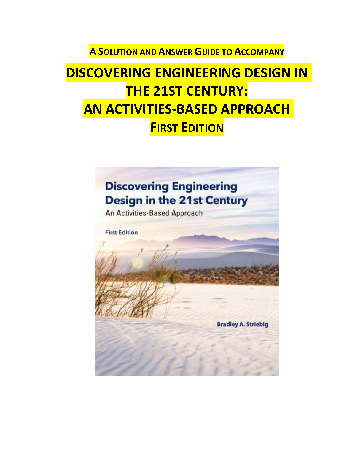 Discovering Engineering Design in the 21st Century: An Activities-Based Approach - First Edition - Solution Manual by Bradley A. Striebig