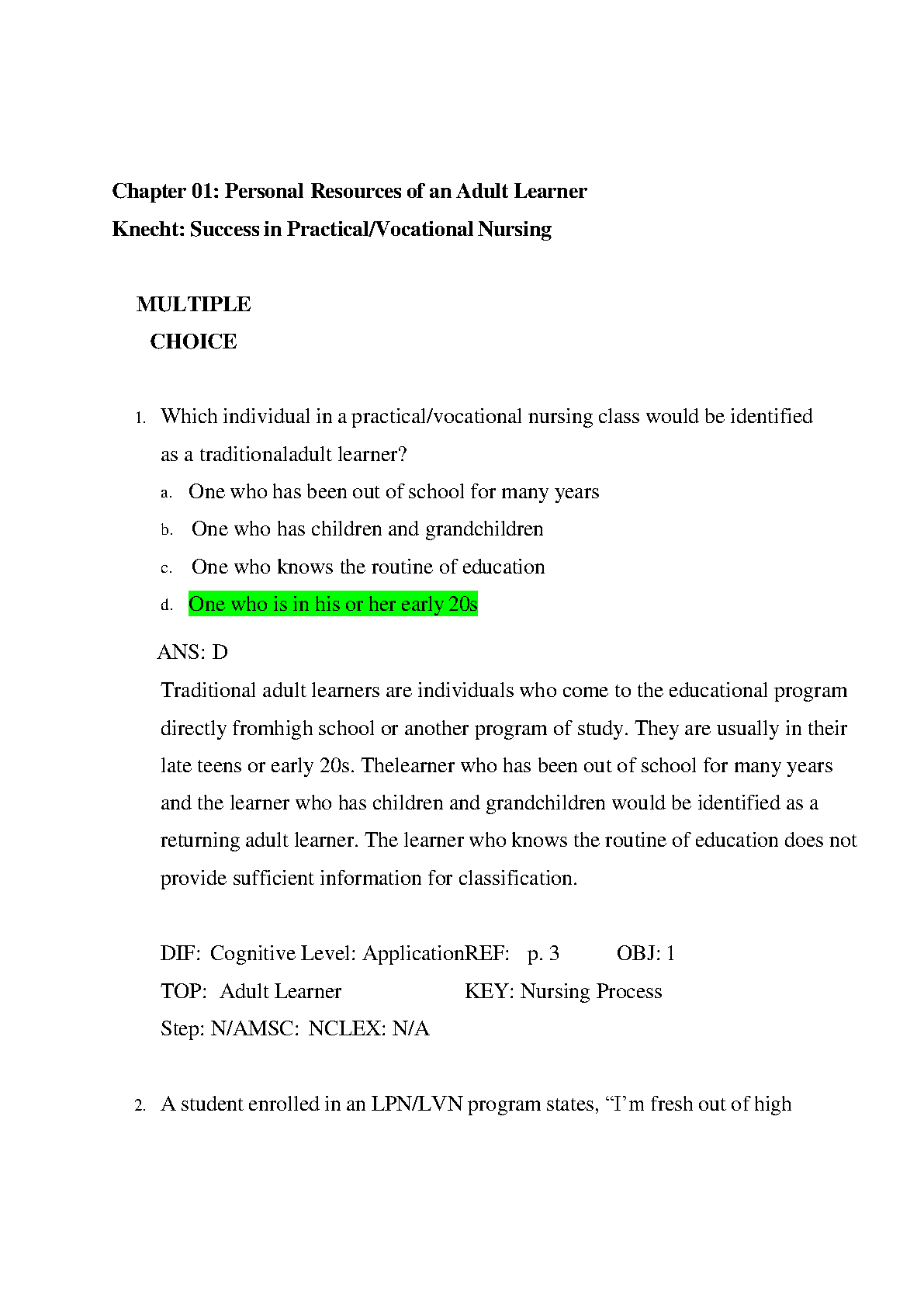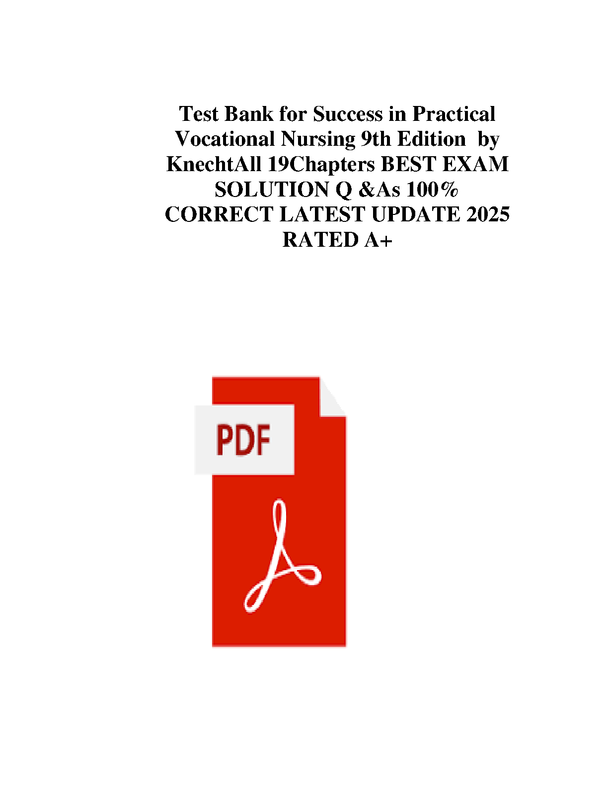 Ace your Practical Vocational Nursing exams with this comprehensive test bank for Success in Practical Vocational Nursing, 9th Edition by Kathryn Knecht. This updated 2025 resource covers all 19 chapters with 100% accurate solutions and Q&As, ensuring exam success on your first attempt. Avoid resits and achieve a top grade!