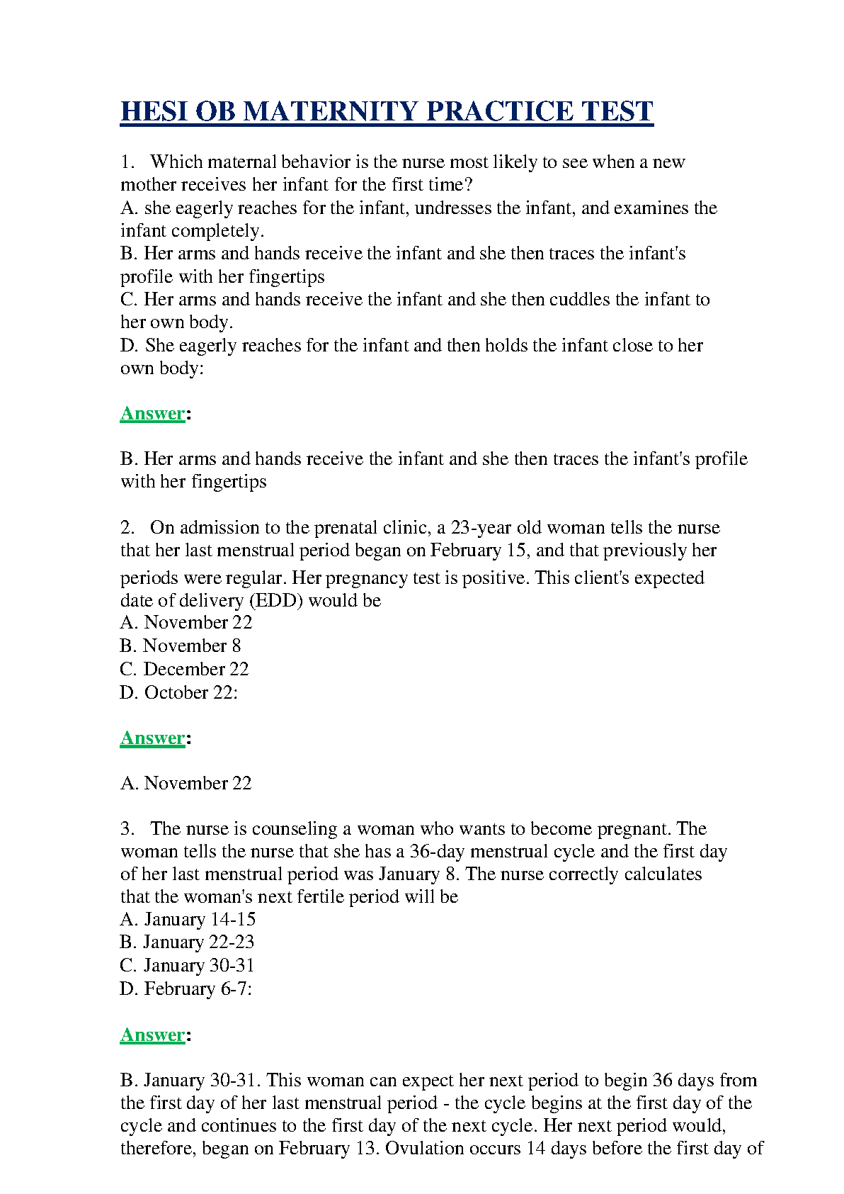HESI OB Maternity Practice Test: A 2024-2025 Guide for First-Time Exam Success