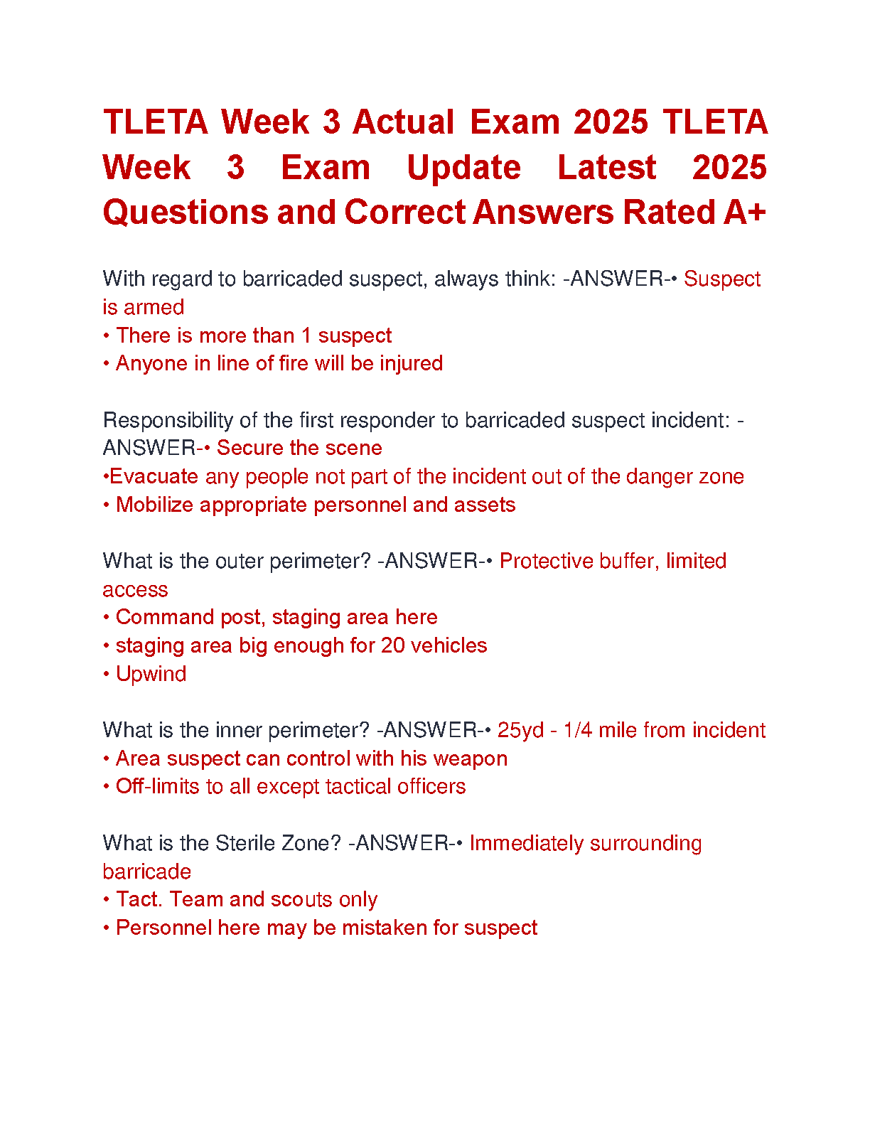 Ace your TLETA Week 3 Exam with this comprehensive study guide. Featuring actual exam questions and A+ rated answers, this resource is designed to help you pass on your first attempt and avoid resits. Prepare effectively and boost your exam confidence with this latest 2025 update.