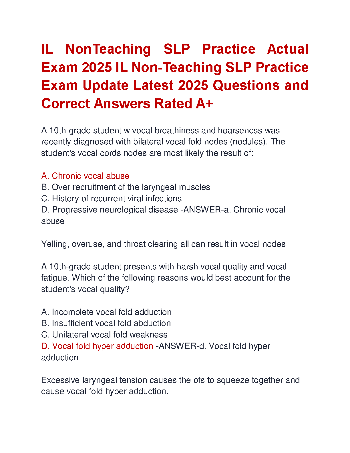 2025 IL Non-Teaching SLP Practice Exam: Latest Questions and Answers Rated A+ - Complete Guide for First-Attempt Exam Success