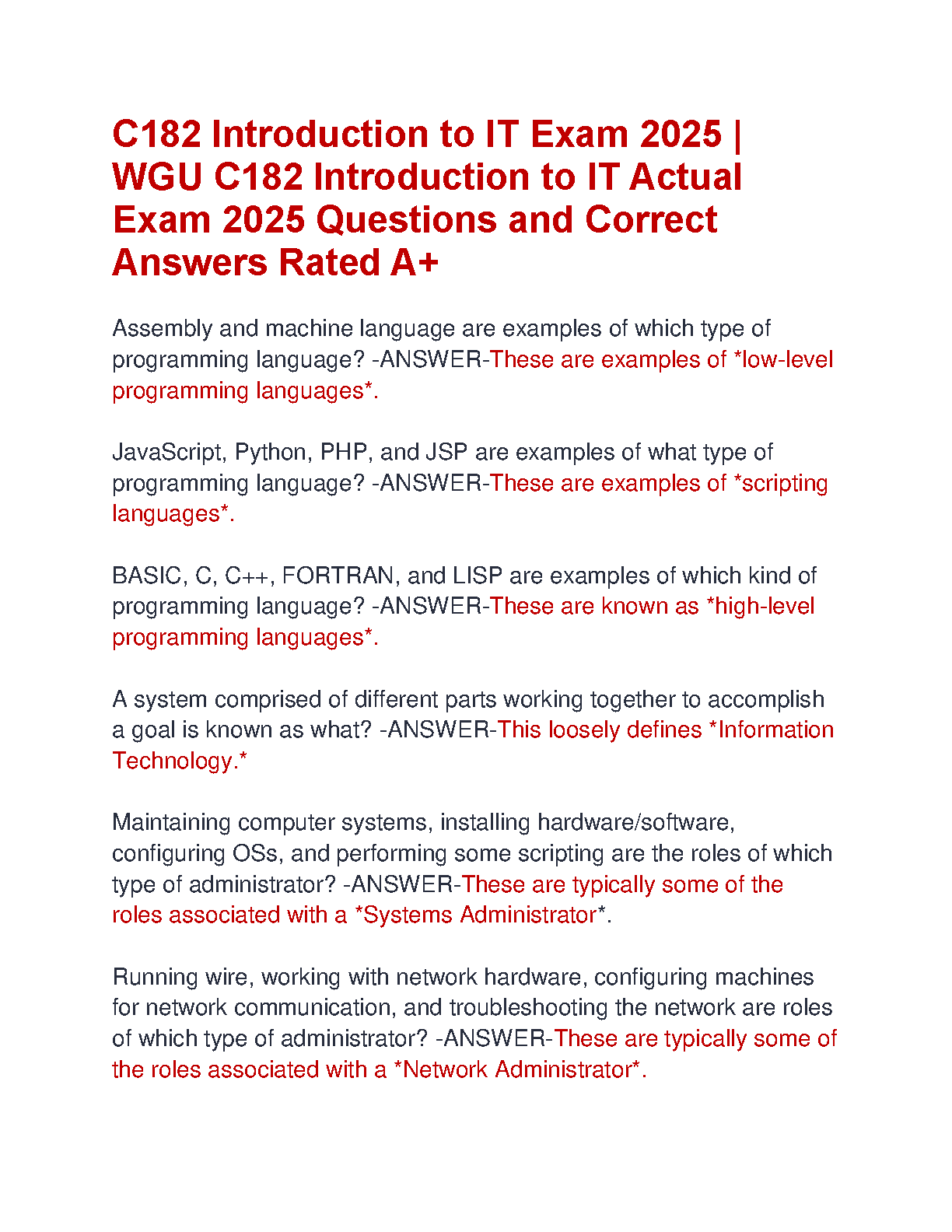 Ace your WGU C182 Introduction to IT exam on your first try with this comprehensive guide featuring actual exam questions and answers rated A+. This 2024/2025 edition is designed to help students avoid resits and master key concepts.