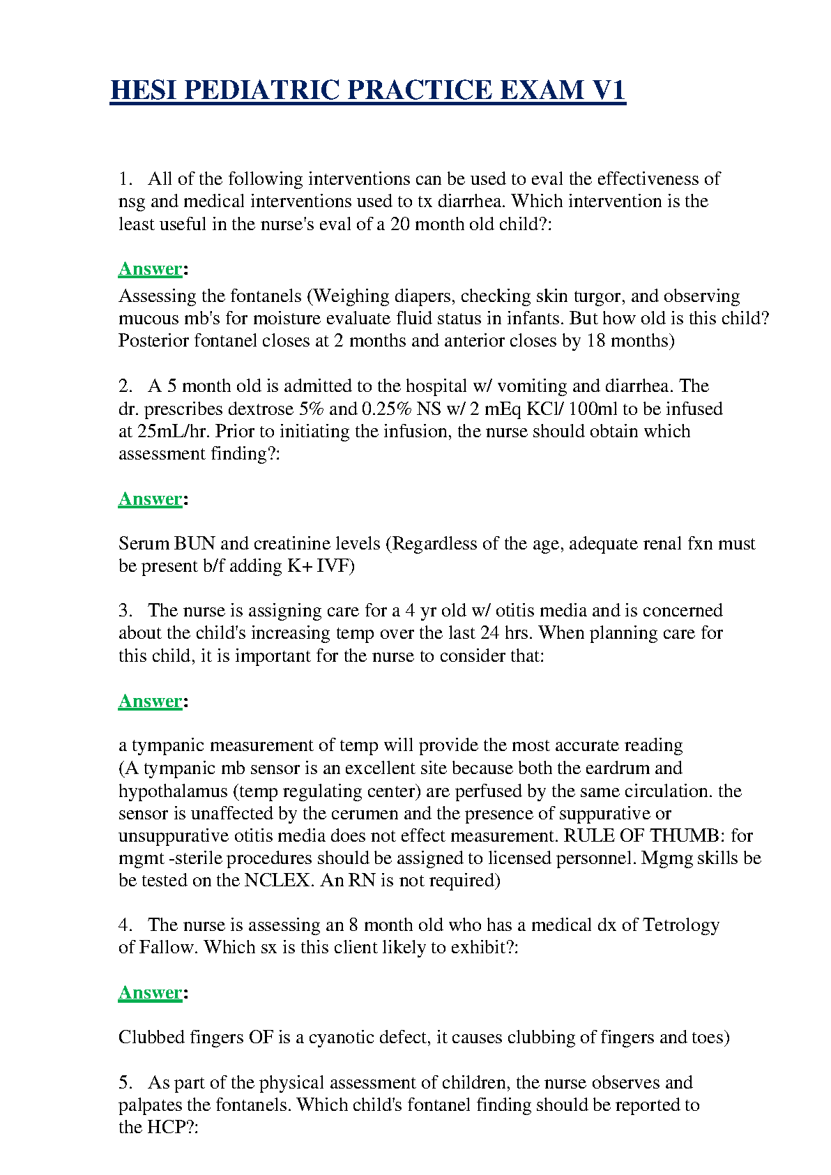 HESI Pediatric Practice Exam V1: Comprehensive Study Guide for Nursing Students
