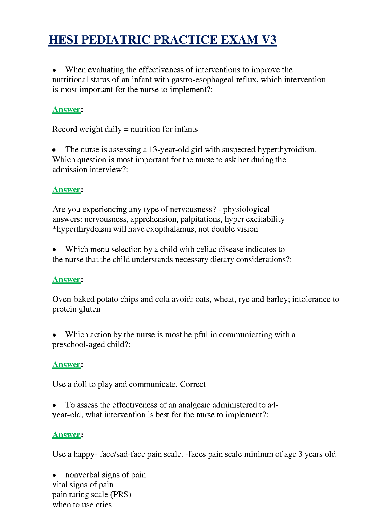 HESI Pediatric Practice Exam V3: Ace Your Nursing Exams with This 2024-2025 Study Guide
