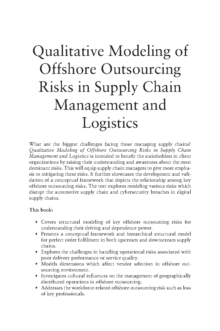 Qualitative Modeling of Offshore Outsourcing Risks in Supply Chain Management and Logistics by Rajiv Kumar Sharma - 2024/2025 Edition
