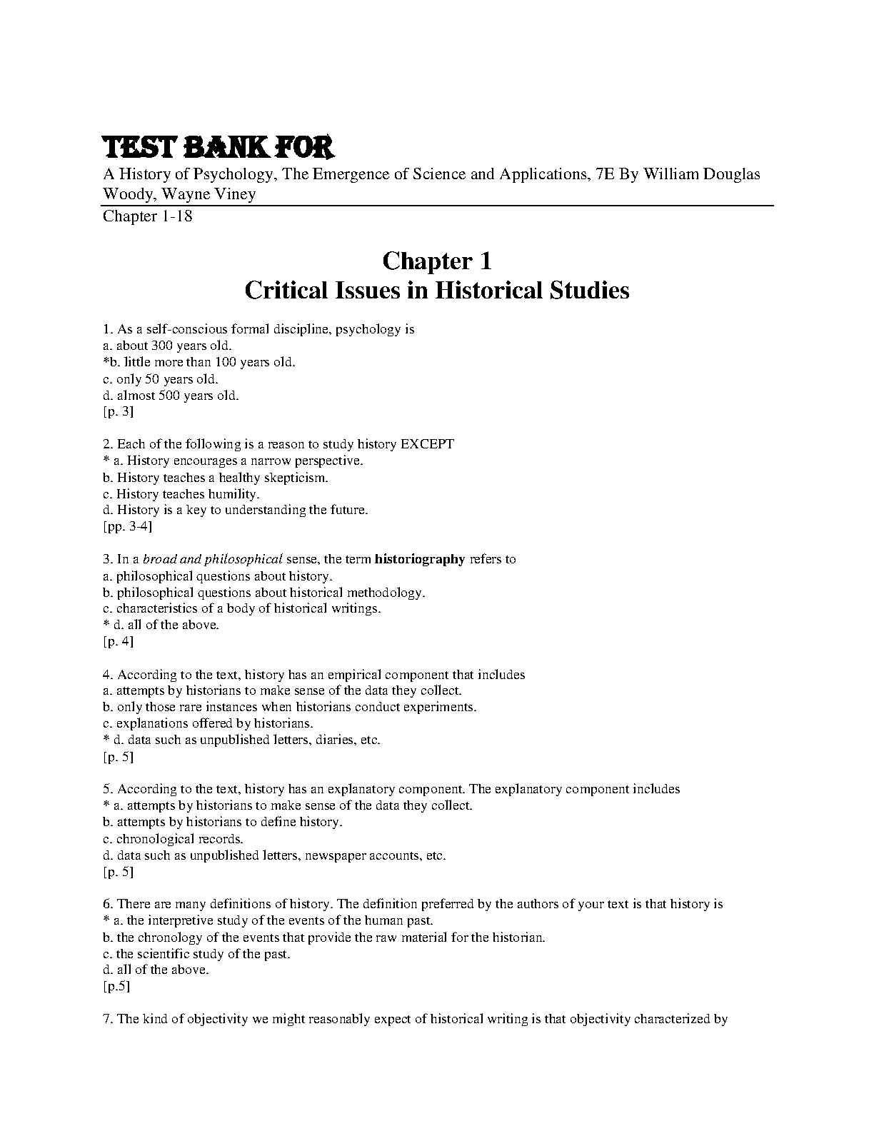 Test Bank for A History of Psychology: The Emergence of Science and Applications, 7th Edition - William Douglas Woody, Wayne Viney