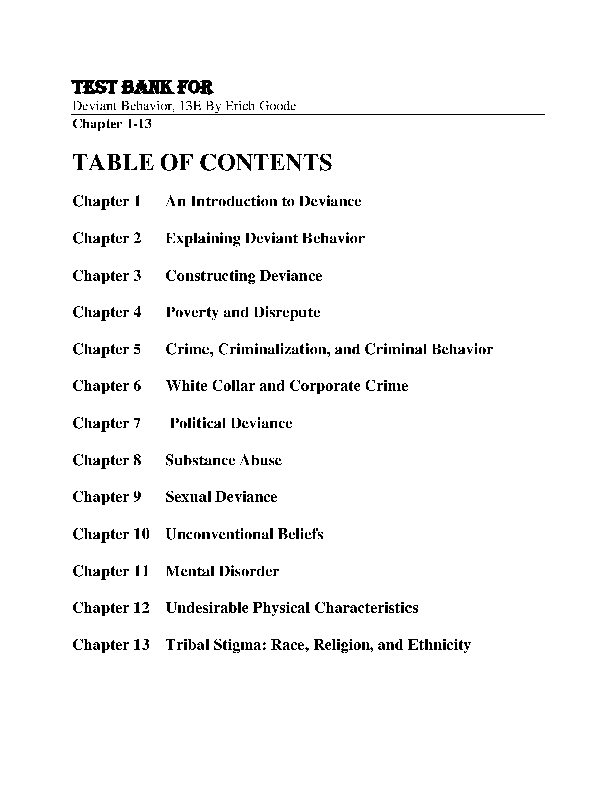 Conquer your Deviant Behavior course with this comprehensive test bank for Goode's 13th edition. This resource provides in-depth coverage of all chapters, ensuring you're fully prepared for exam success and avoid resits. Master key concepts, practice effectively, and achieve top marks on your first attempt.