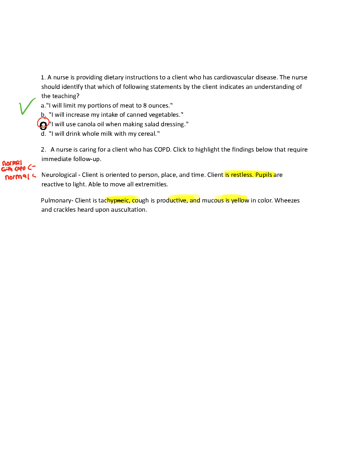 Ace your nursing exams with this comprehensive guide designed to help you pass on your first attempt. This resource covers crucial concepts in patient assessment and clinical reasoning, including dietary instructions and COPD management, ensuring exam readiness and avoiding costly resits.