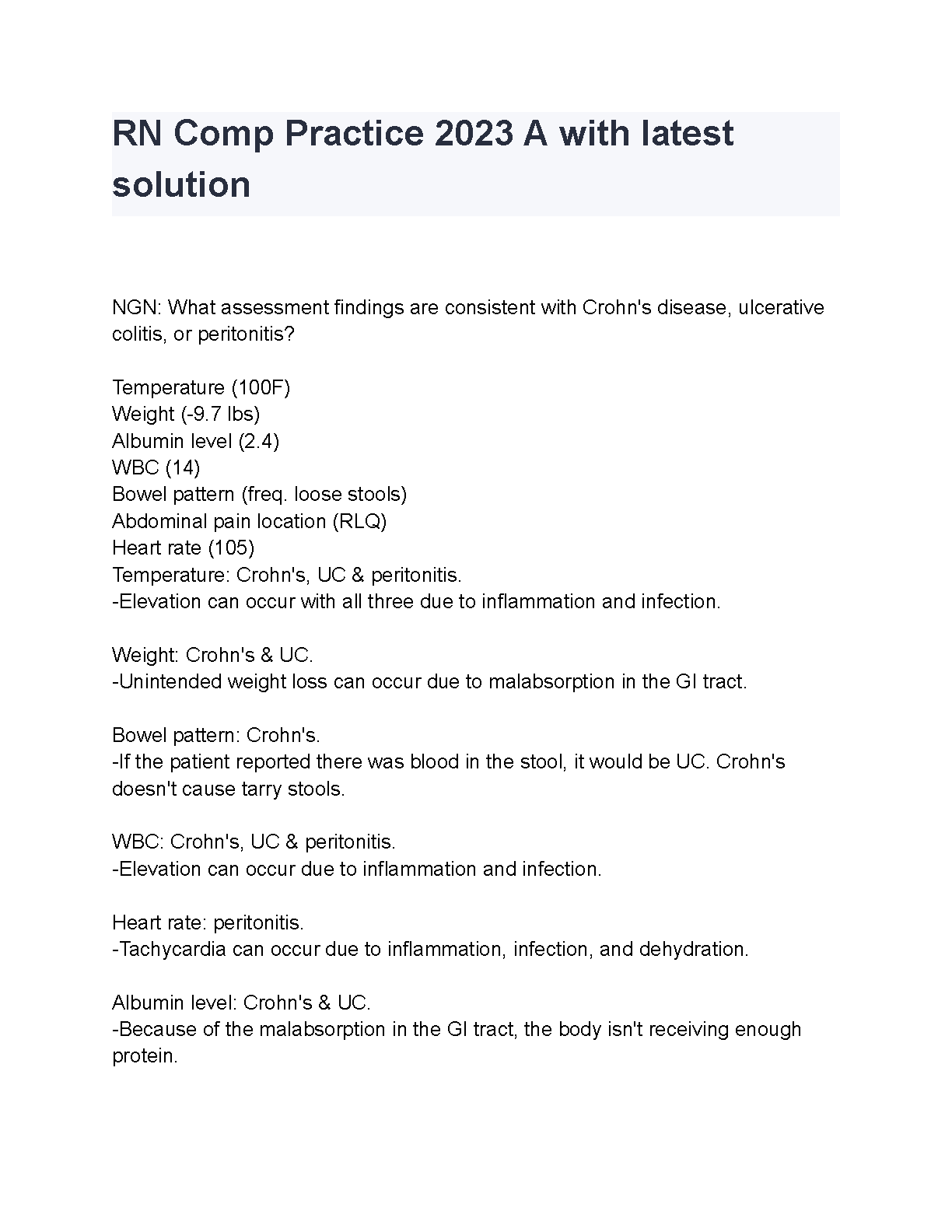 RN Comp Practice 2023 A with Latest Solutions by [Author Name]