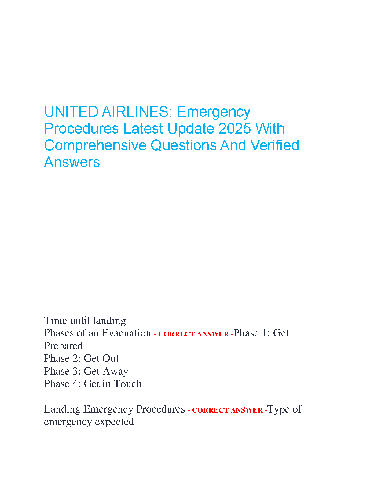 Ace your United Airlines emergency procedures exam with this latest 2025 update. This resource contains comprehensive questions and verified answers, designed to help you pass on your first try and avoid resits. Get prepared for success!