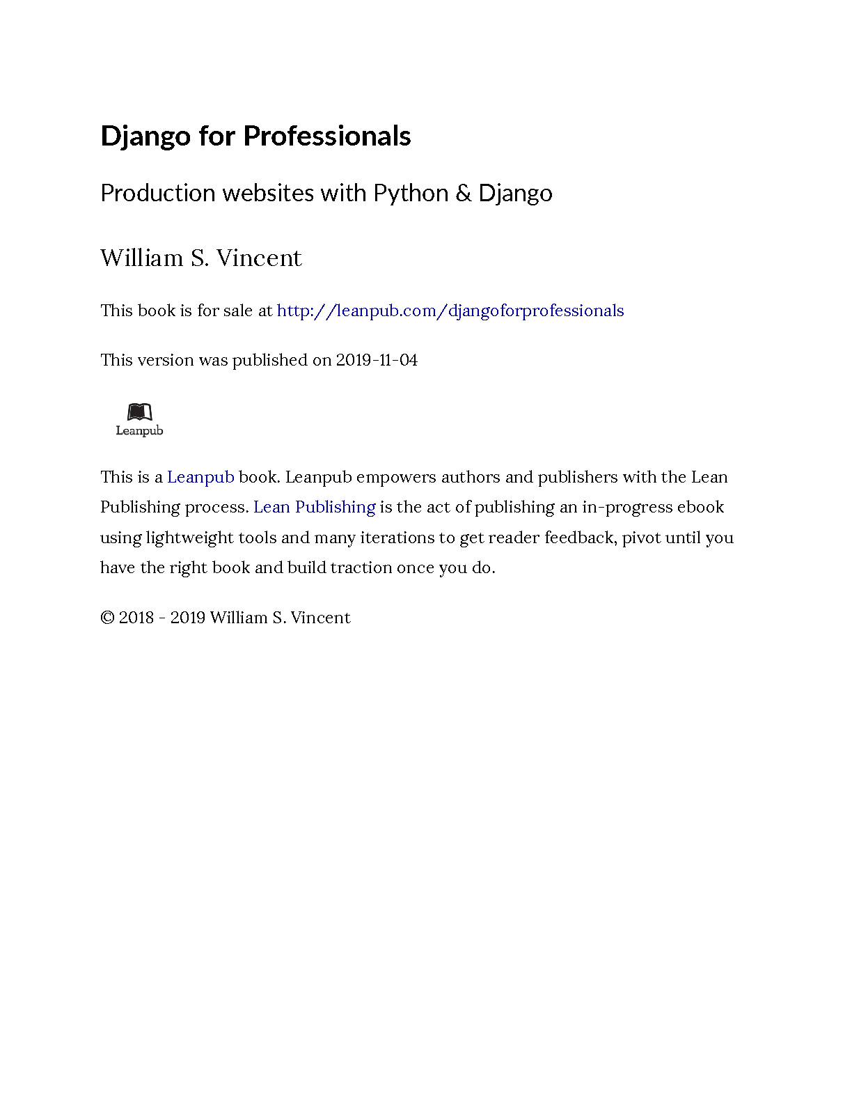 Django for Professionals 2.2 by William S. Vincent: Build Production-Ready Websites with Python and Django