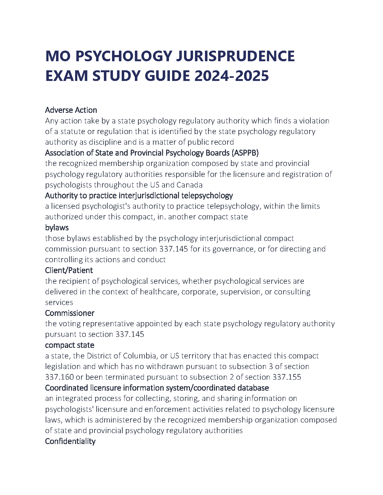 MO Psychology Jurisprudence Exam Study Guide 2024-2025: Ace Your Exams on the First Attempt