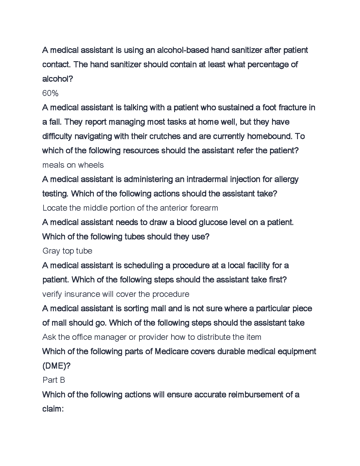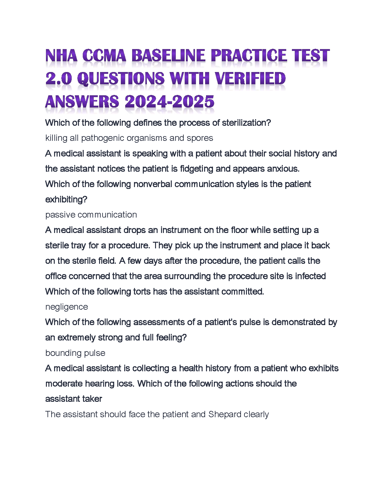 NHA CCMA Baseline Practice Test 2.0 Questions with Verified Answers 2024-2025: Ace Your Exam on the First Attempt!