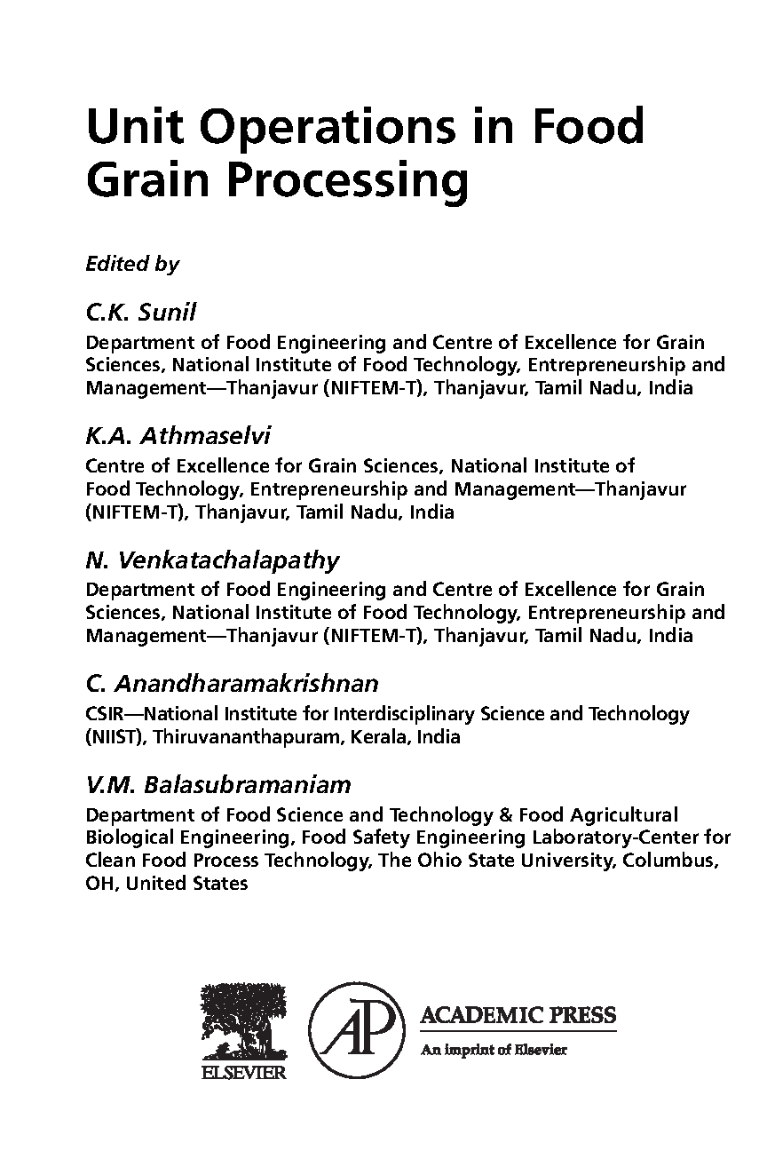 Unit Operations in Food Grain Processing - 1st Edition by C.K. Sunil, K.A. Athmaselvi, N. Venkatachalapathy, C. Anandharamakrishnan, and V.M. Balasubramaniam