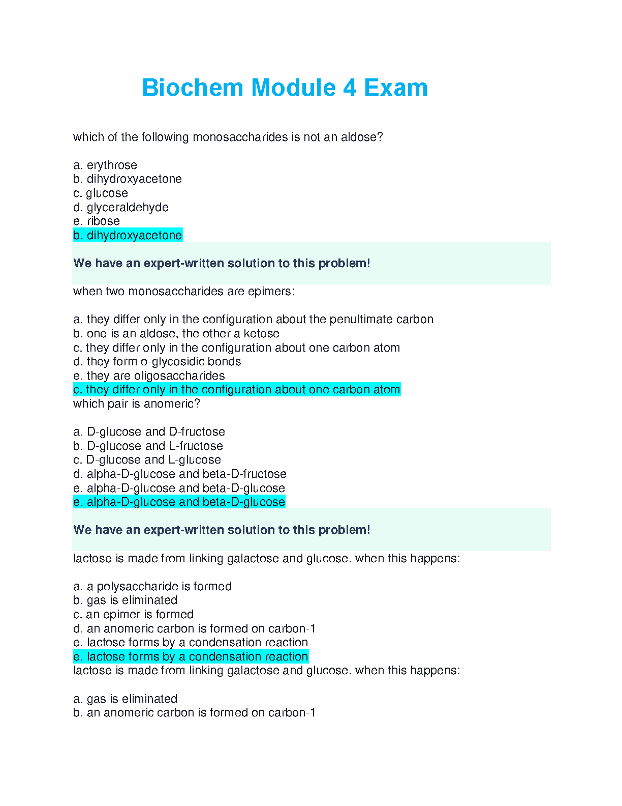 Biochemistry Module 4 Exam Solutions - Expert Answers for 2024/2025