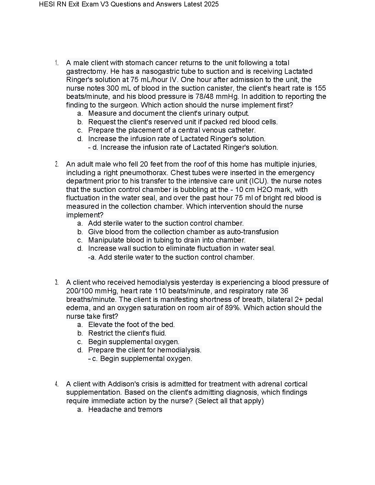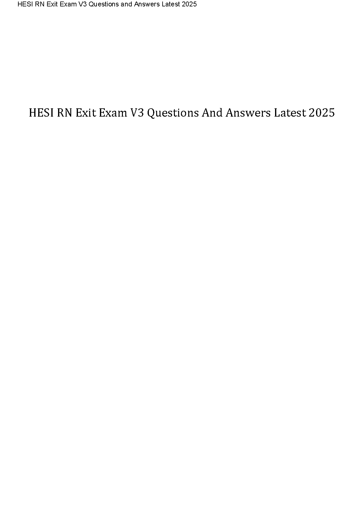 Prepare for the HESI RN Exit Exam V3 with the latest 2024-2025 questions and answers. This comprehensive resource will help you master the material and pass your exam with confidence, avoiding costly resits. Get ready to achieve your nursing goals!