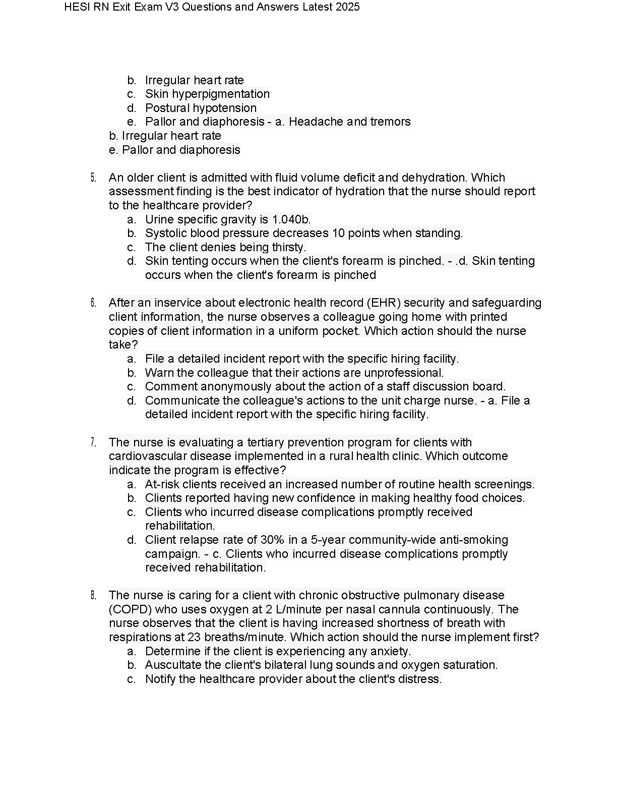 HESI RN Exit Exam V3 Questions and Answers 2024-2025: Ace Your Exam on the First Attempt!