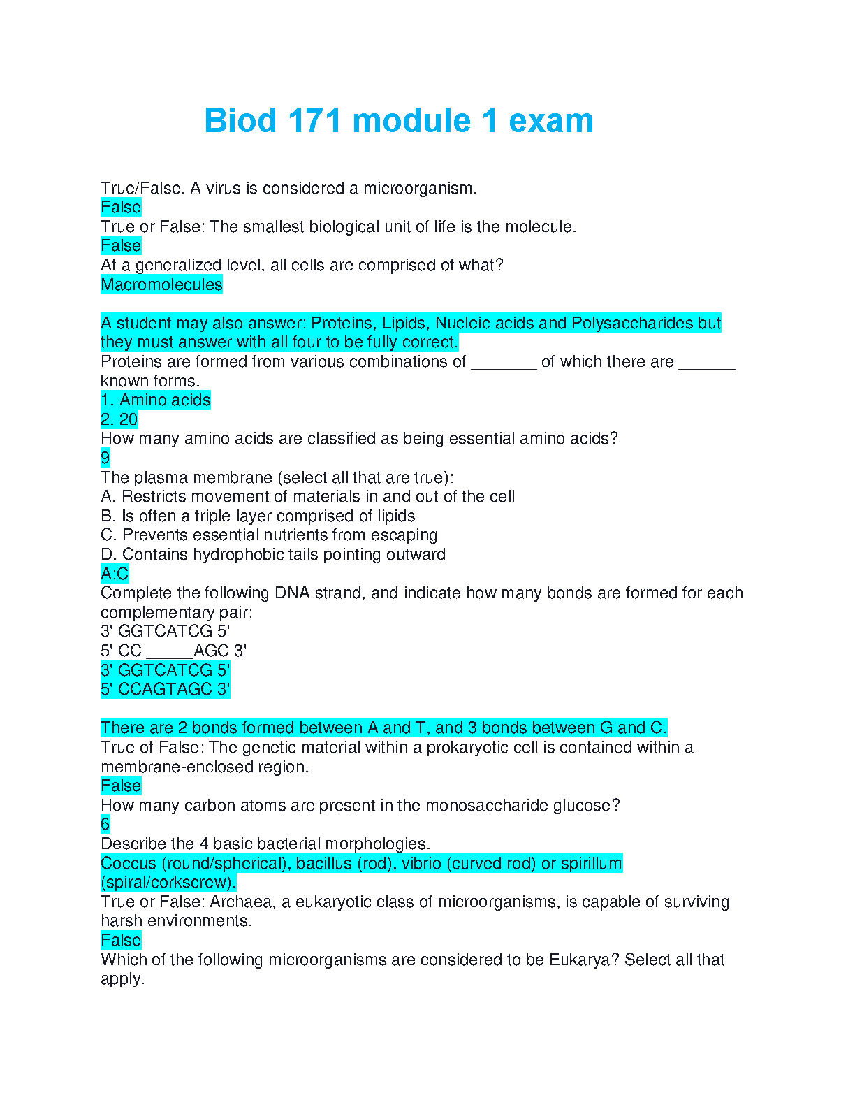 Biod 171 Module 1 Exam: A Complete Study Guide for 2024-2025