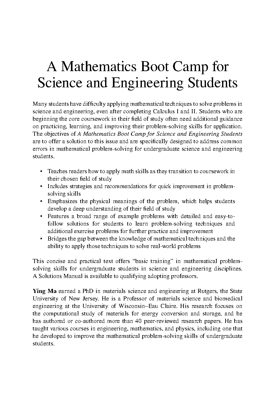 A Mathematics Boot Camp for Science and Engineering Students by Ying Ma - 1st Edition: Ace Your Exams on the First Attempt