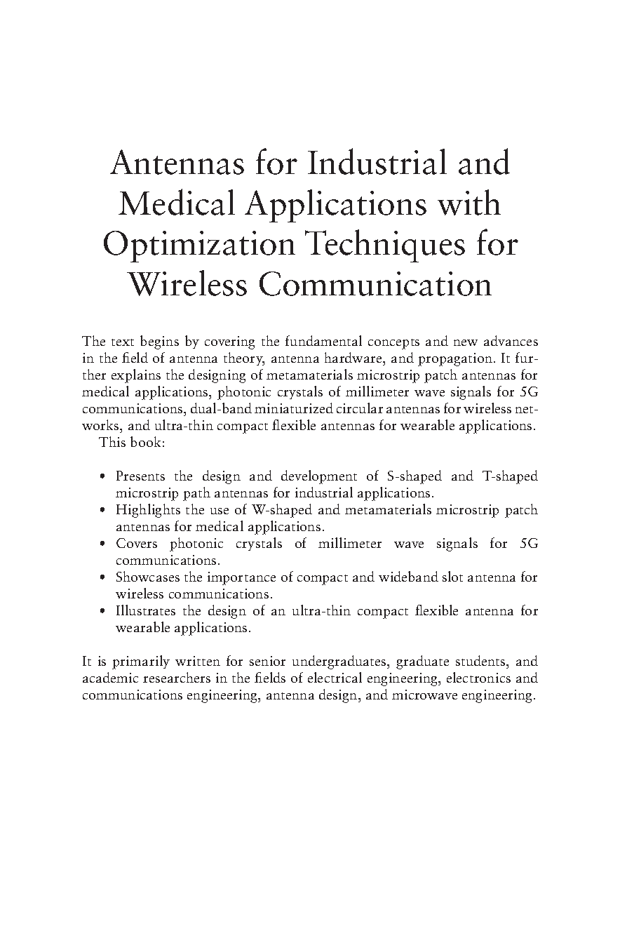 Antennas for Industrial and Medical Applications with Optimization Techniques for Wireless Communication (1st Edition) - by S. Kannadhasan and R. Nagarajan