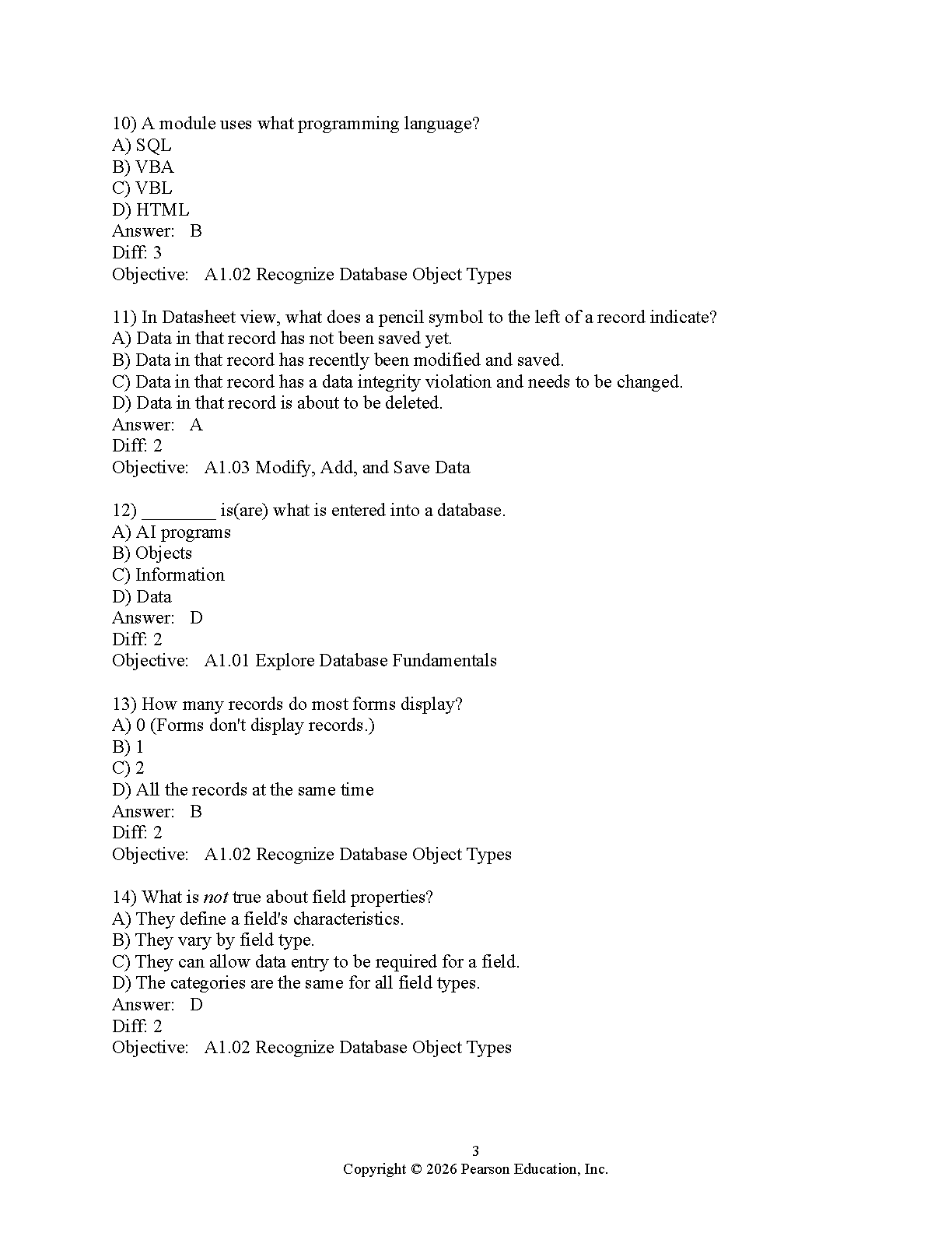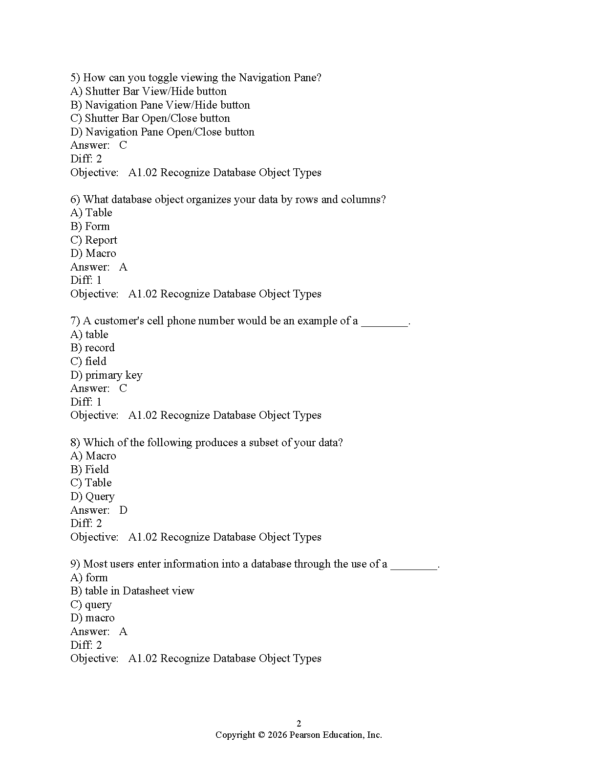 Ace your exams with this comprehensive test bank for Exploring Microsoft Office 365: Introductory 2025 (Poatsy), Chapter 1: Introduction to Databases and Microsoft Access. This resource covers key concepts and helps students master the material, increasing their chances of passing on the first attempt and avoiding resits. Prepare effectively for your 2024/2025 academic year exams.
