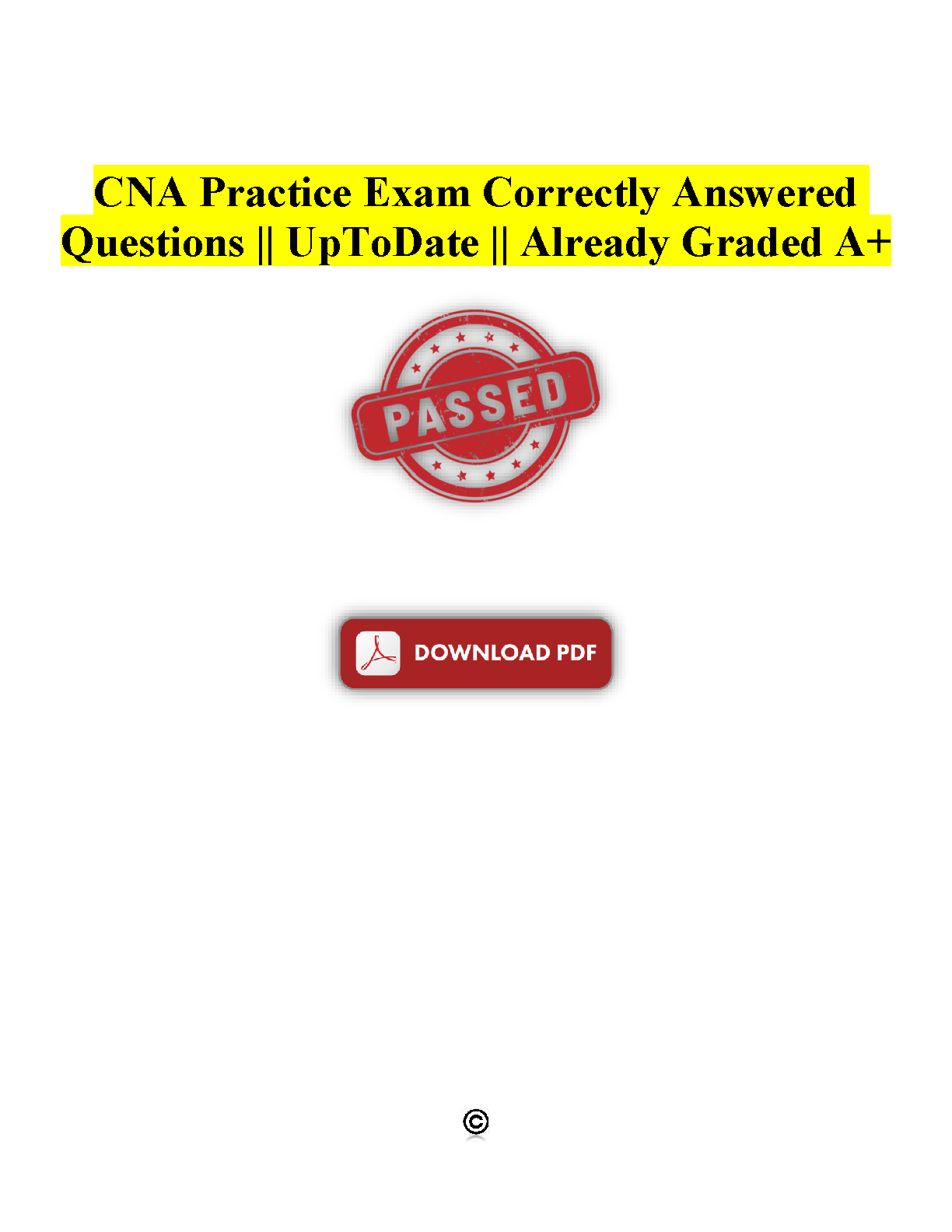 Ace your CNA exam on the first try with this comprehensive practice exam featuring correctly answered questions, updated for the 2024-2025 academic year. These up-to-date questions are already graded with an A+, ensuring you're well-prepared for exam day. Download now and avoid resits!