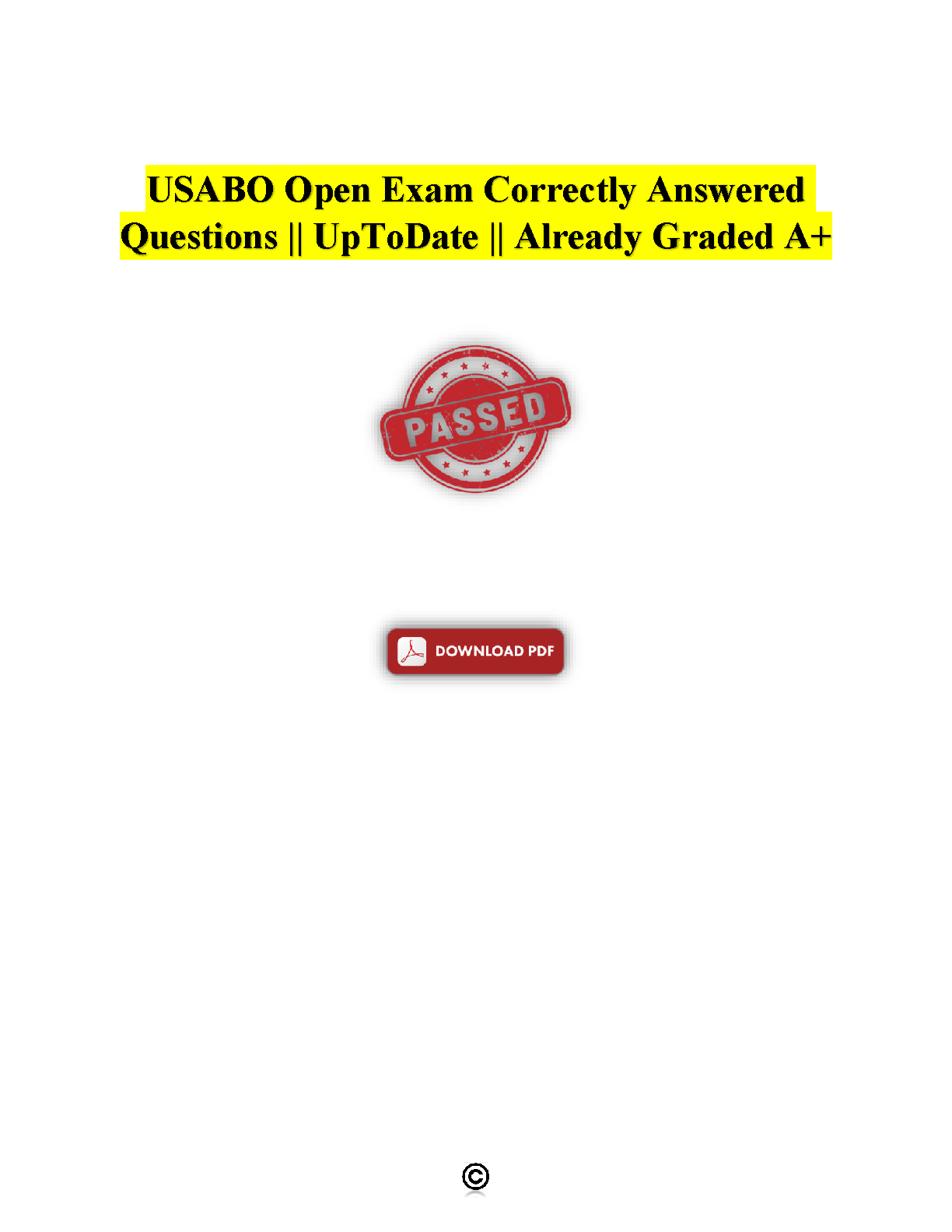 Ace your USABO Open Exam with this comprehensive resource! This updated 2024/2025 edition provides correctly answered questions, ensuring you're fully prepared for exam success on your first attempt. Avoid resits and boost your confidence with this invaluable study guide.