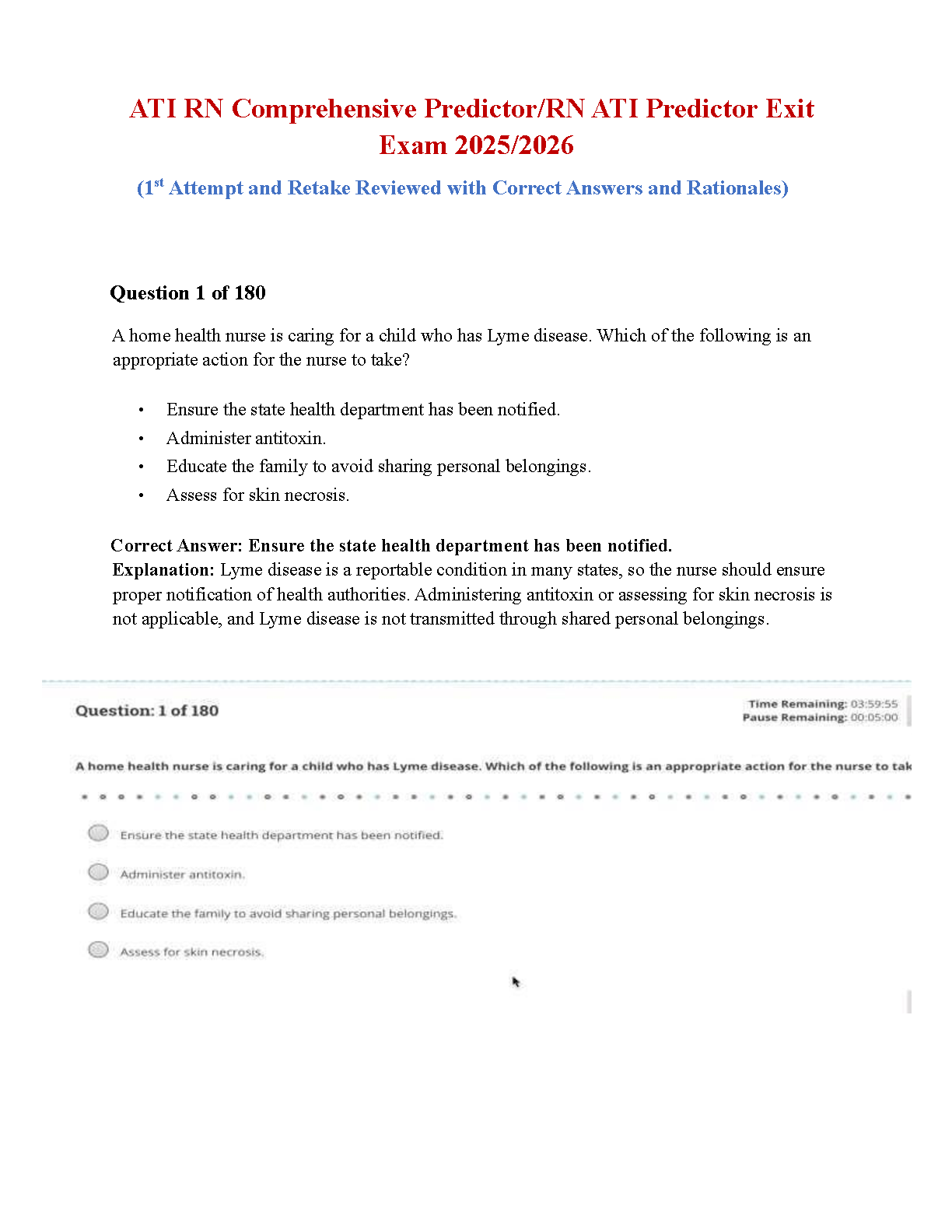 This comprehensive ATI RN exam prep resource includes 180+ questions with answers and rationales, covering key concepts for success. Designed for both first-time test takers and those aiming to improve their scores, this study guide ensures you're well-prepared to pass your ATI exam on the first attempt, avoiding costly resits. Perfect for the 2024-2025 academic year.