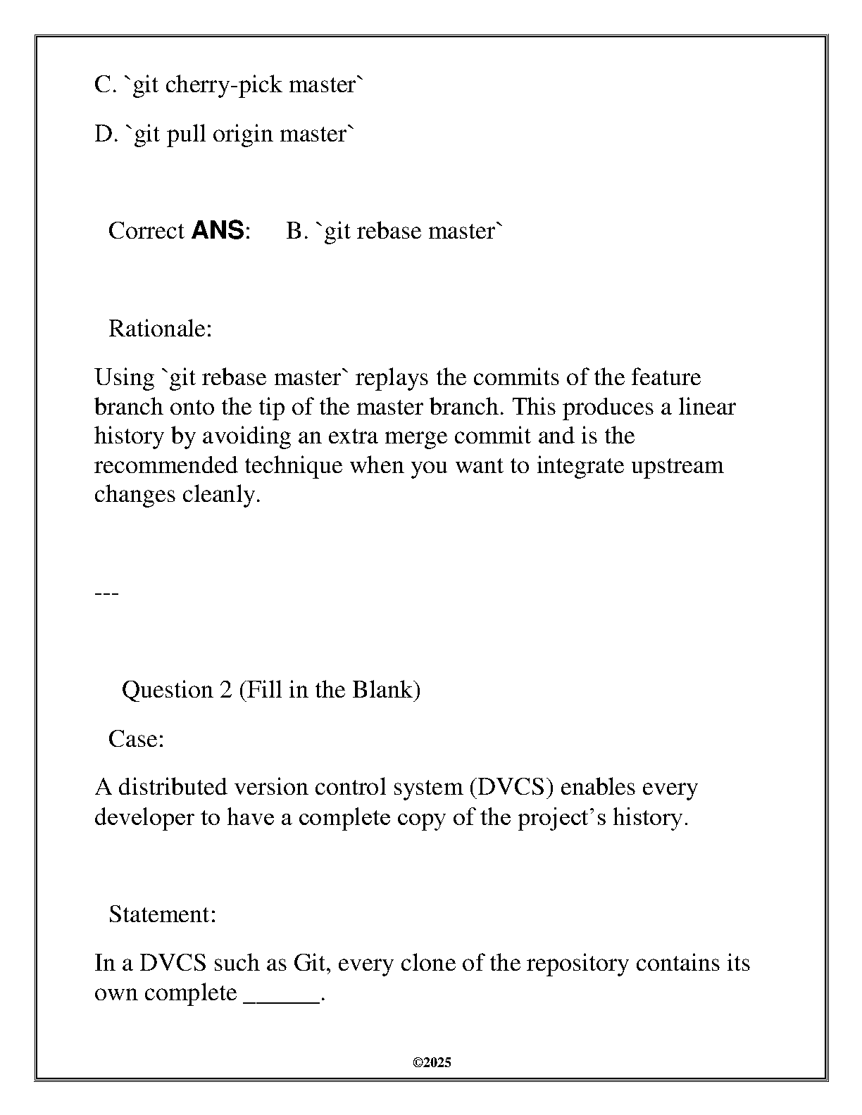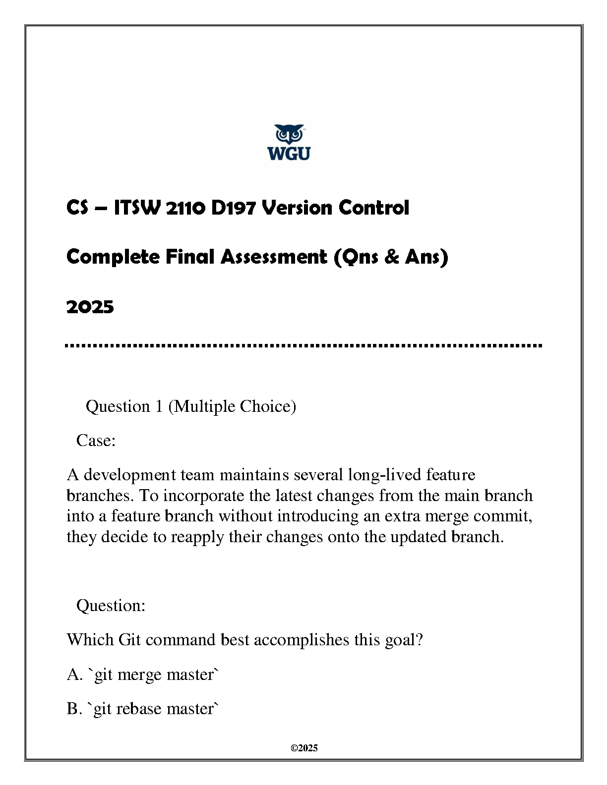 WGU CS - ITSW 2110 D197 Version Control Complete Final Assessment (Questions & Answers) 2025 Edition