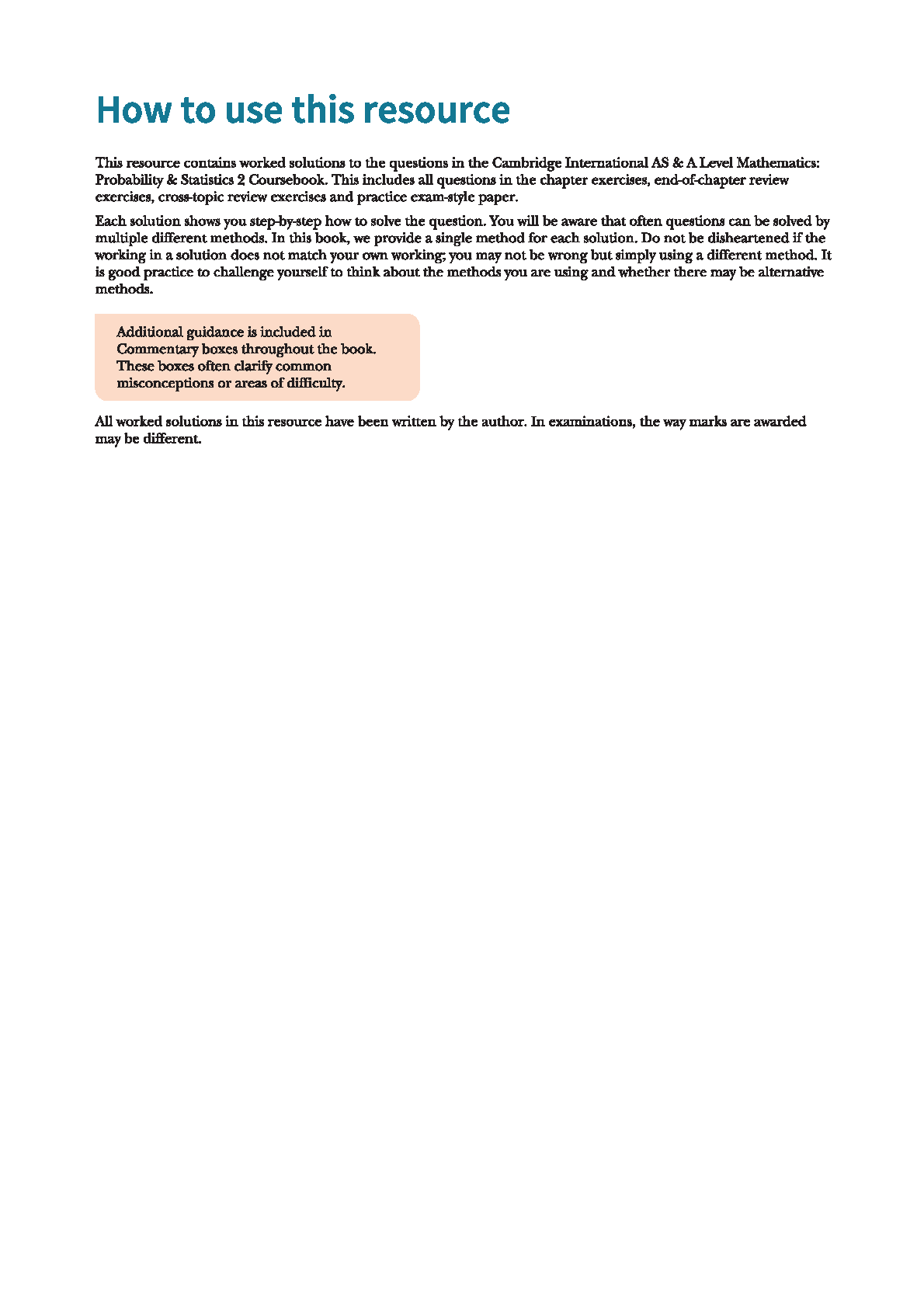 Ace your exams with this comprehensive worked solutions manual for Cambridge International AS & A Level Mathematics: Probability & Statistics 2 by Dean Chalmers. This invaluable resource provides detailed solutions to all the exercises, ensuring a deeper understanding of the concepts and boosting your confidence for exam success. Perfect for students aiming for top marks and avoiding resits.