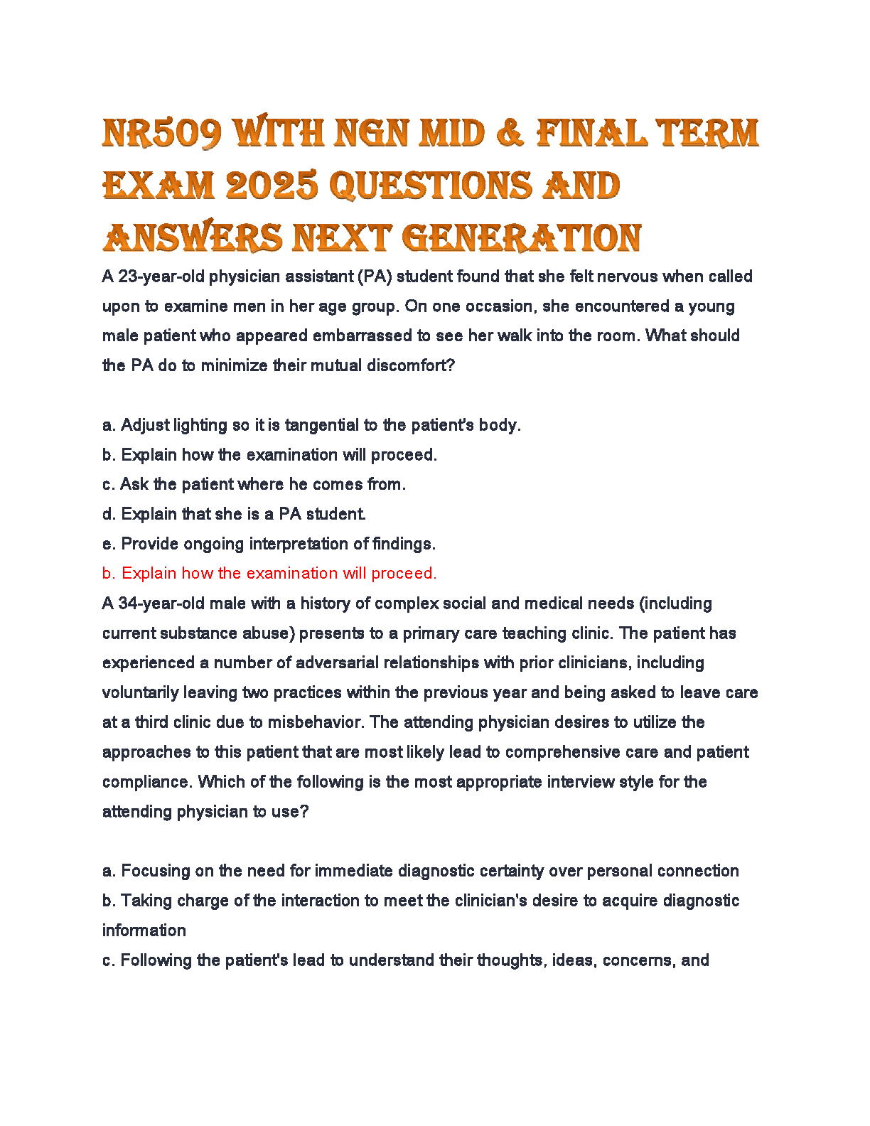 Ace your NR509 exam with this comprehensive study guide featuring questions and answers covering the Midterm and Final Term for the 2024-2025 academic year. Designed to help students pass on their first try and avoid resits, this resource provides in-depth coverage of key concepts to ensure exam readiness.