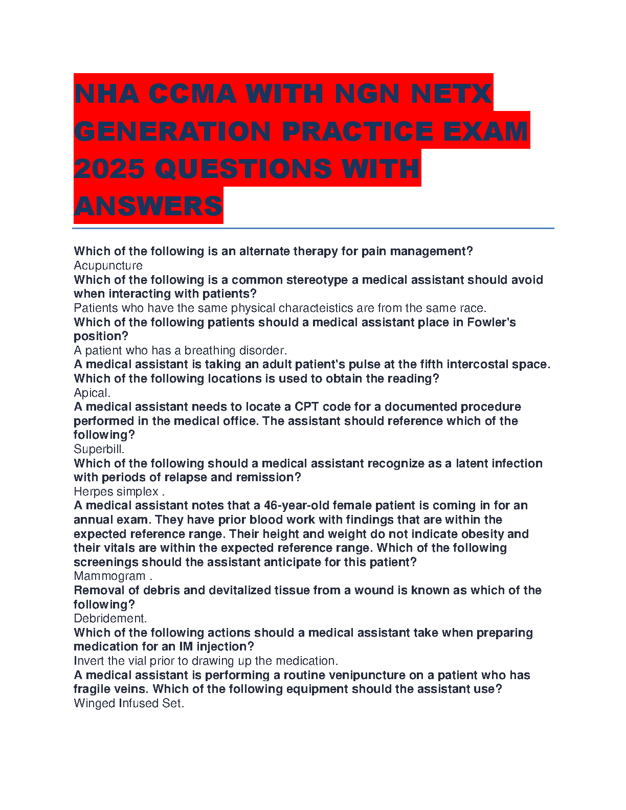 NHA CCMA Exam 2025: Next Generation Practice Questions with Answers