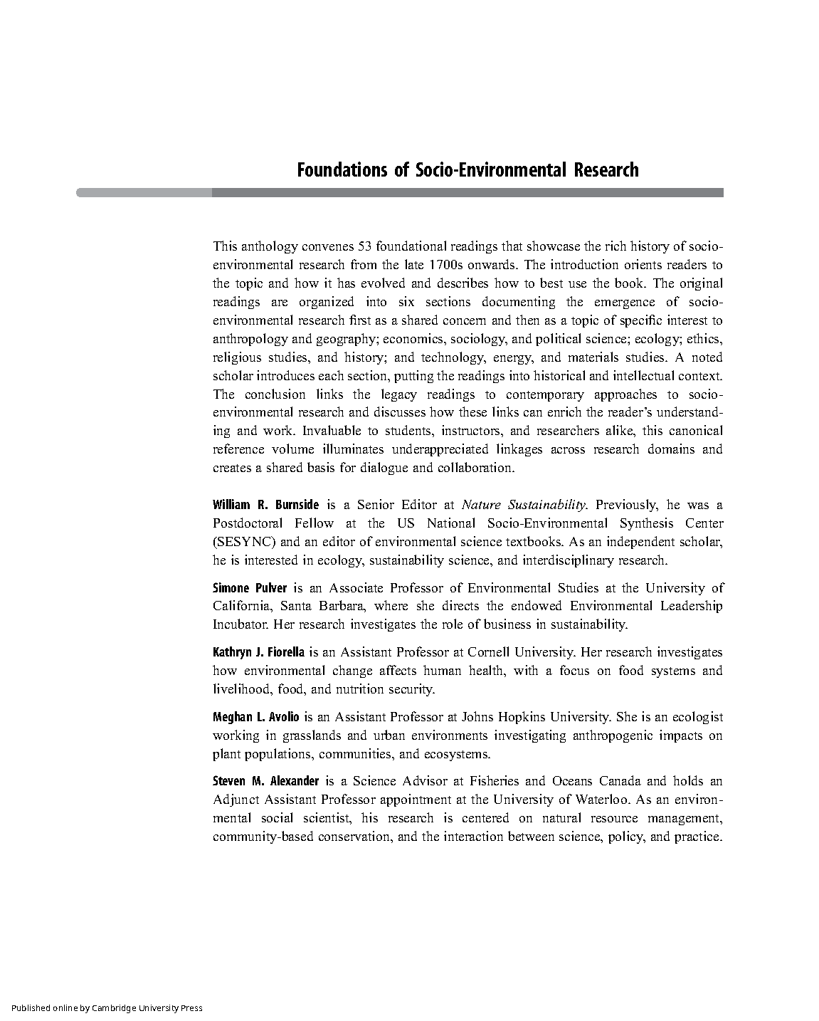 Foundations of Socio-Environmental Research: Legacy Readings with Commentaries - Edited by William R. Burnside, Simone Pulver, Kathryn J. Fiorella, Meghan L. Avolio, and Steven M. Alexander