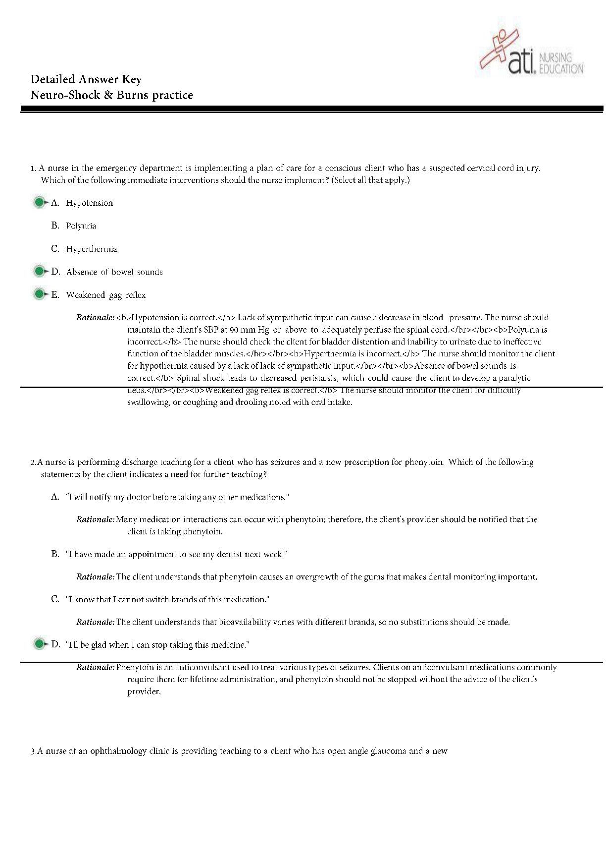Ace Your Exams: Neuro-Shock & Burns Practice Test with Detailed Answer Key