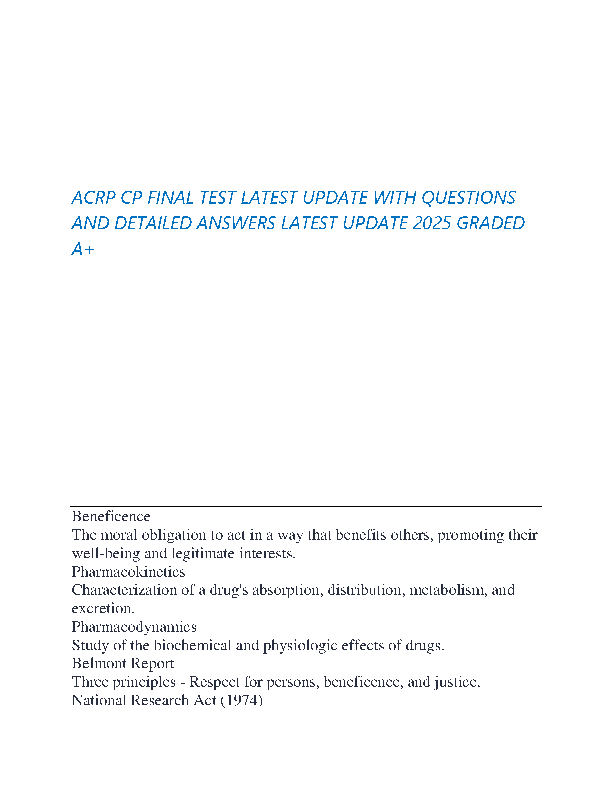 ACRP CP Final Test: 2025 Edition - Questions and Answers for Exam Success