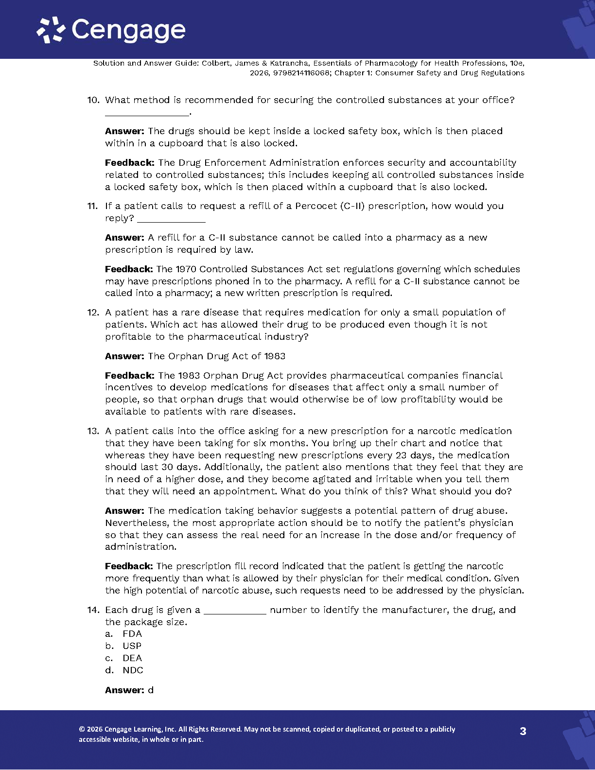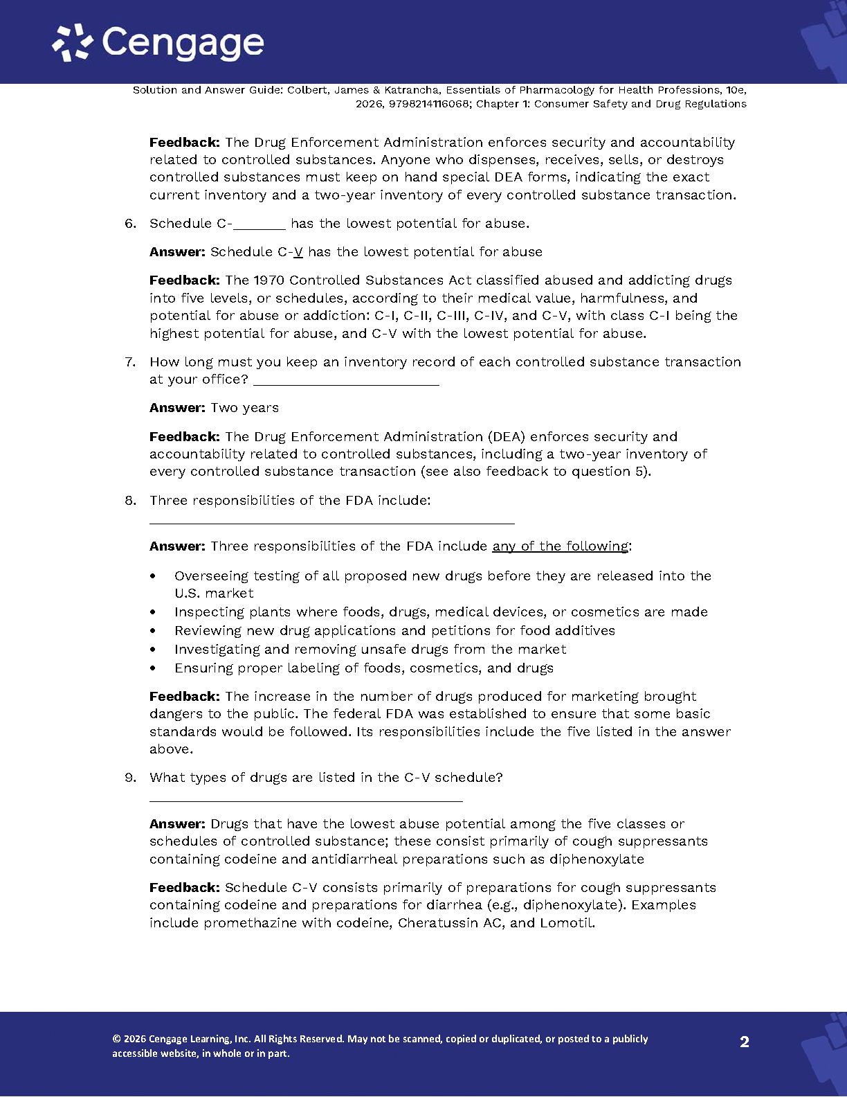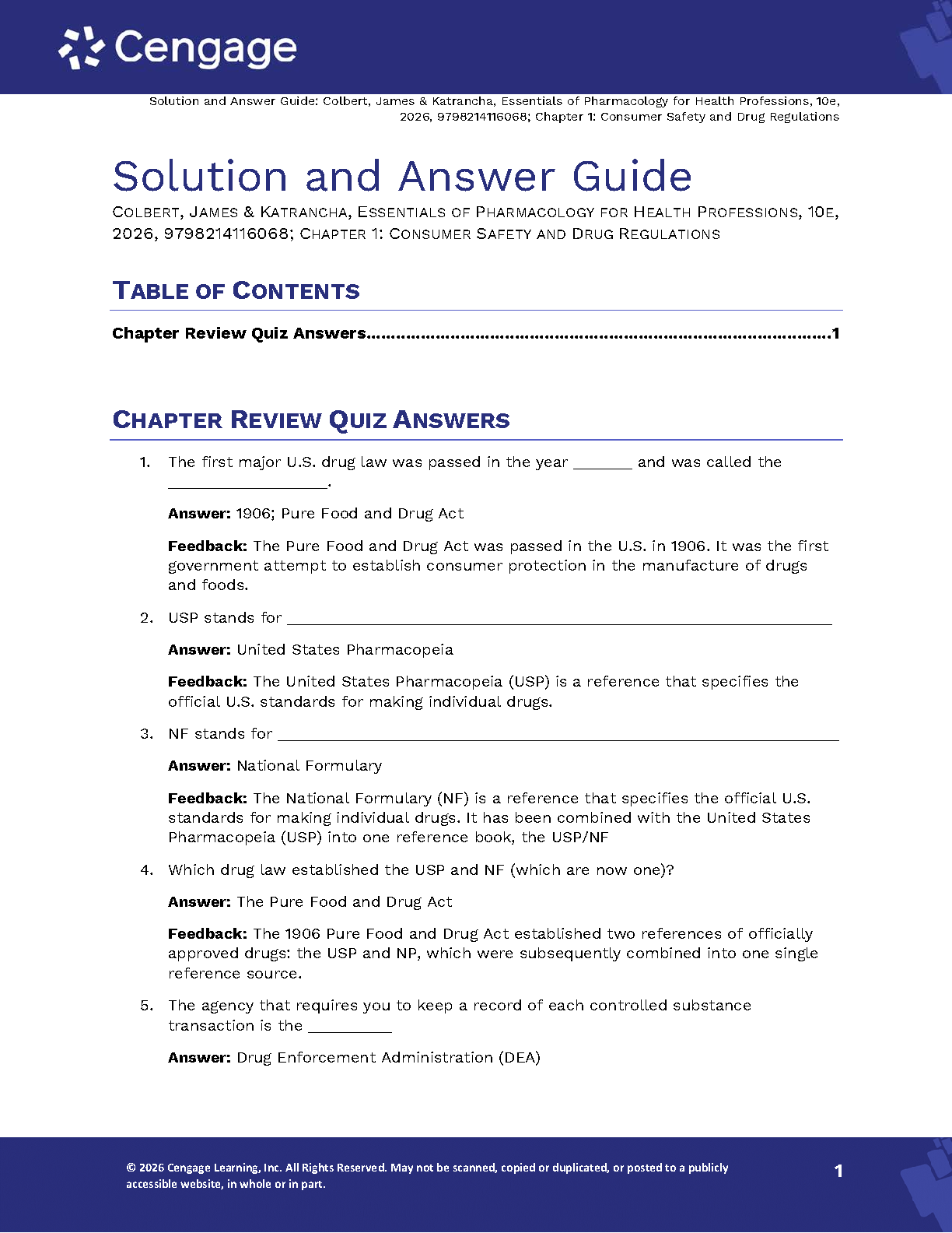 Ace your Pharmacology exams with this comprehensive solution manual for Colbert, James & Katrancha's Essentials of Pharmacology for Health Professions, 10th edition. This guide provides detailed answers and explanations for chapter review quizzes, ensuring first-attempt exam success and avoiding resits. Perfect for 2024/2025 academic year.