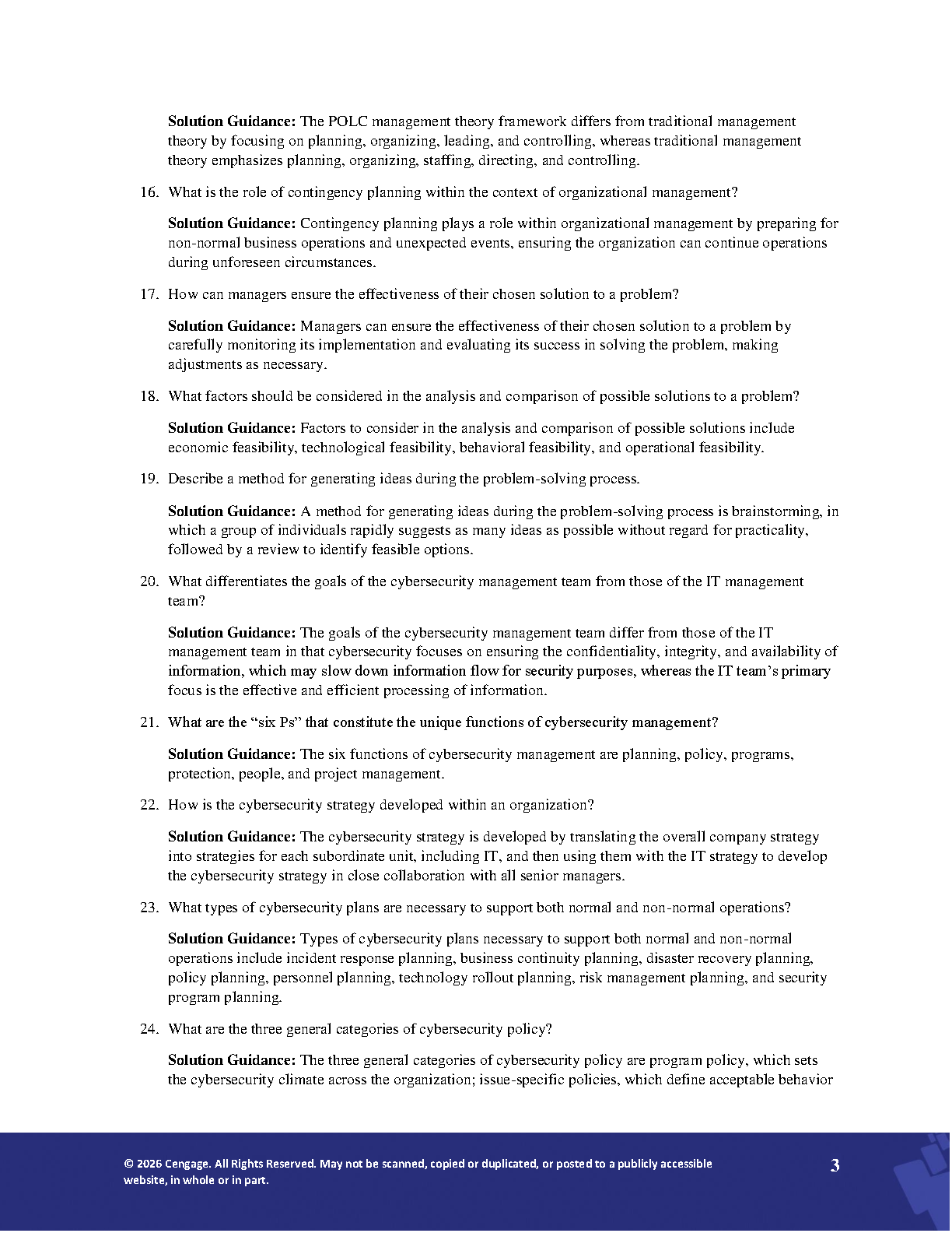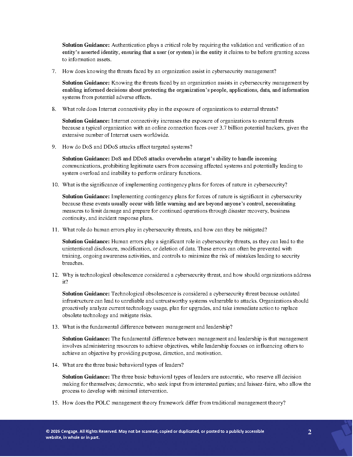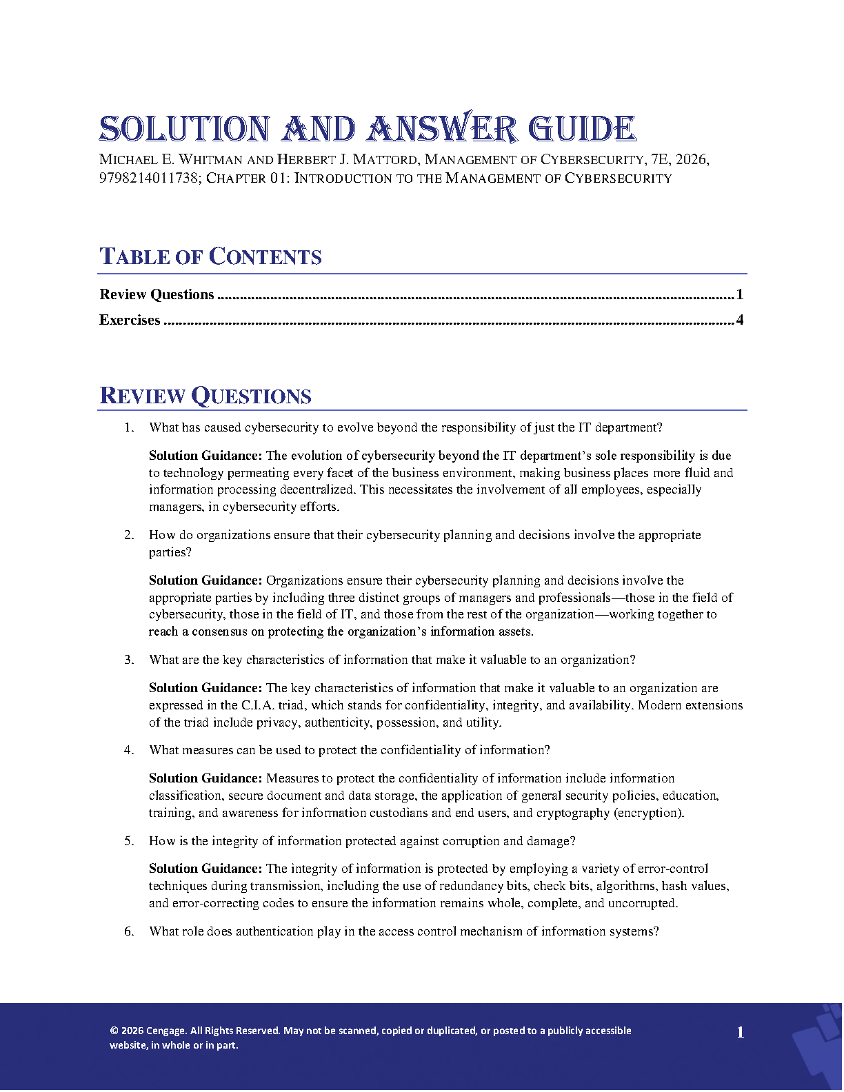 Management of Cybersecurity, 7th Edition, by Michael E. Whitman and Herbert J. Mattord: Solution and Answer Guide