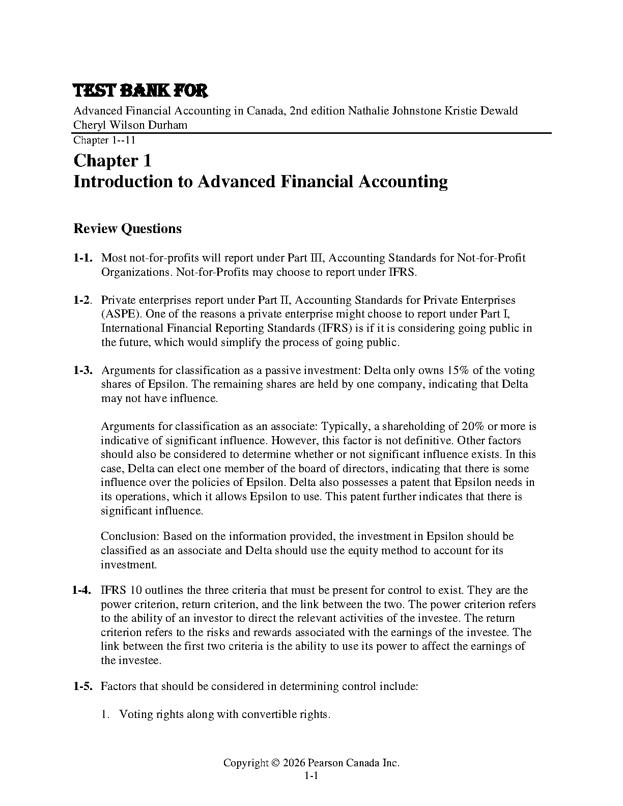 Advanced Financial Accounting in Canada, 2nd Edition Test Bank: Nathalie Johnstone, Kristie Dewald, Cheryl Wilson Durham