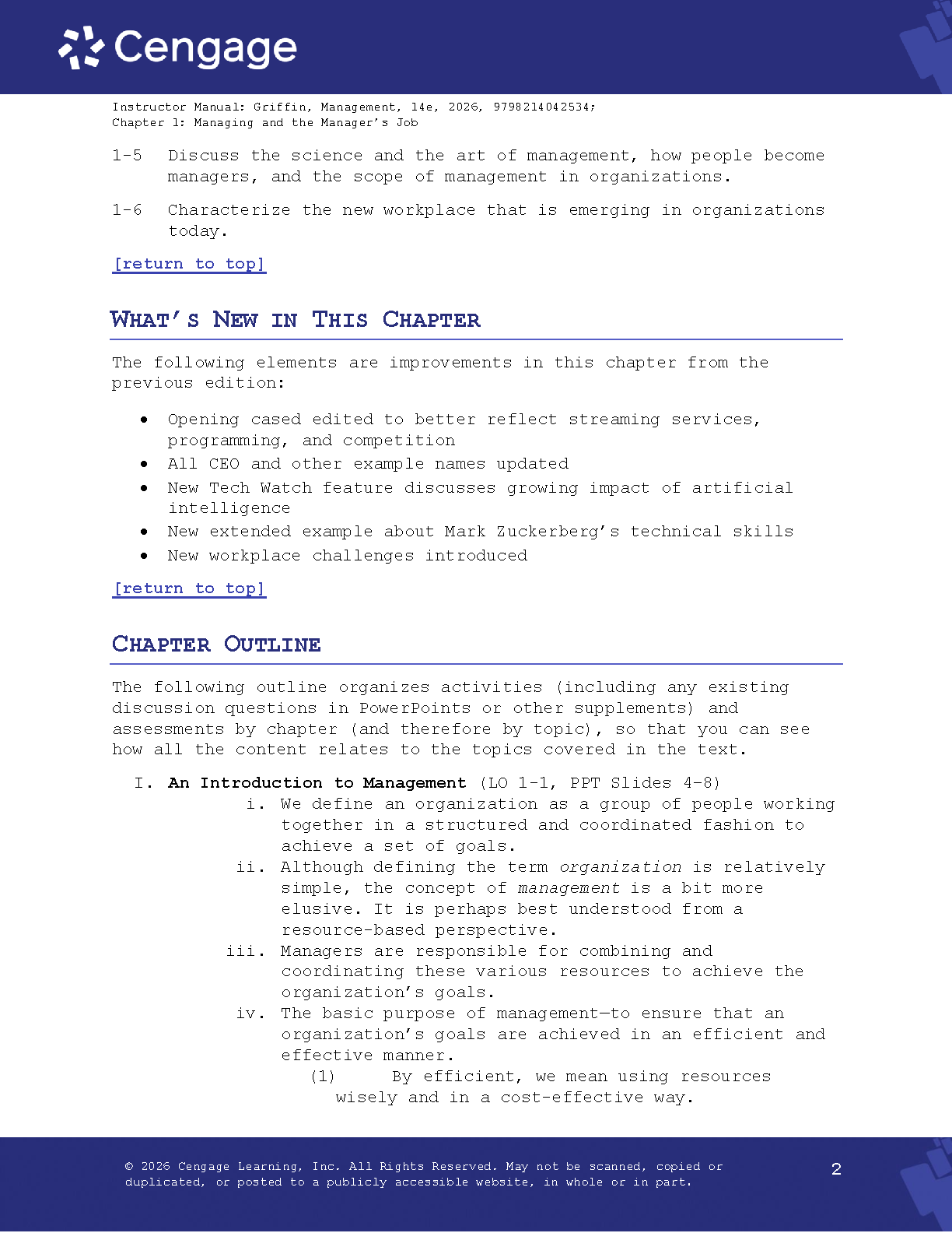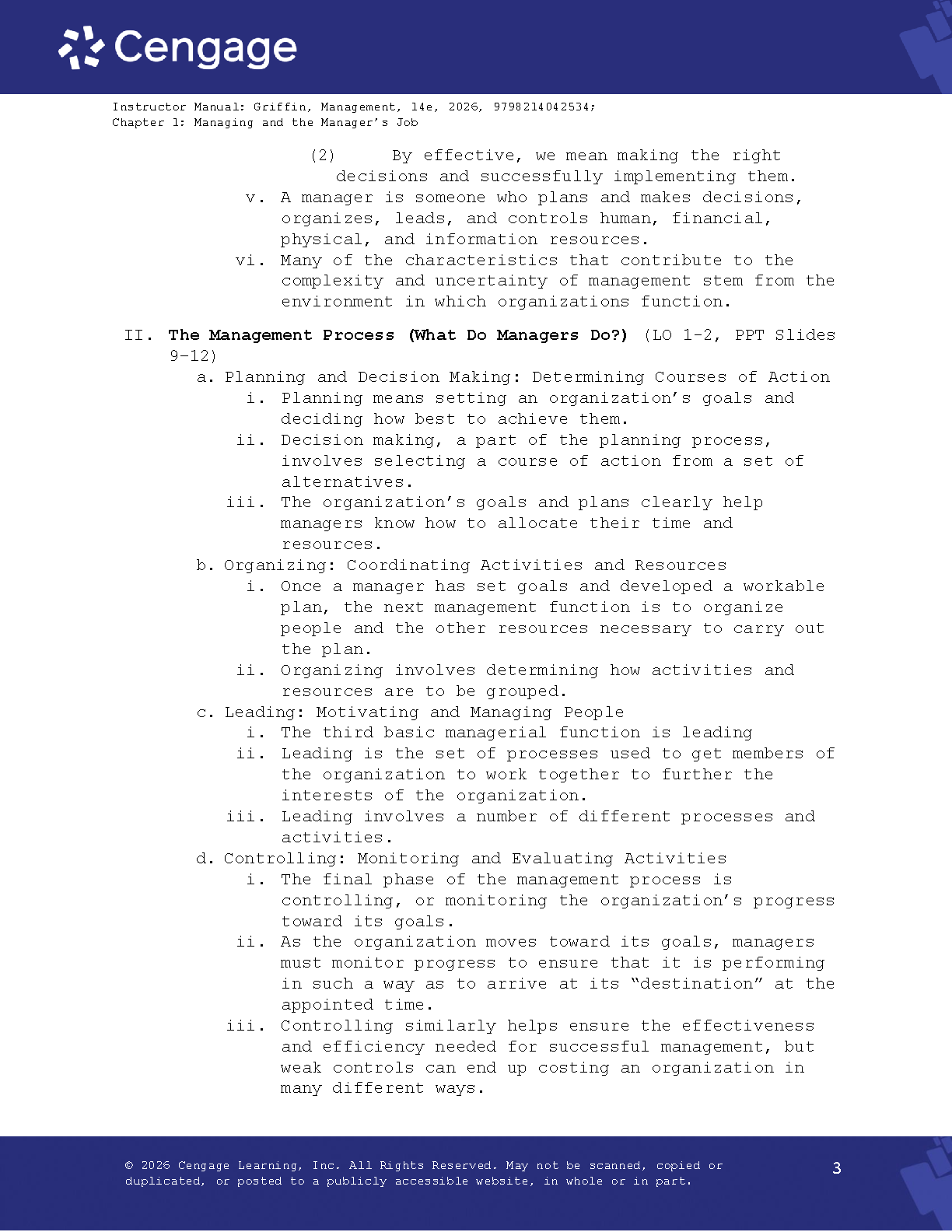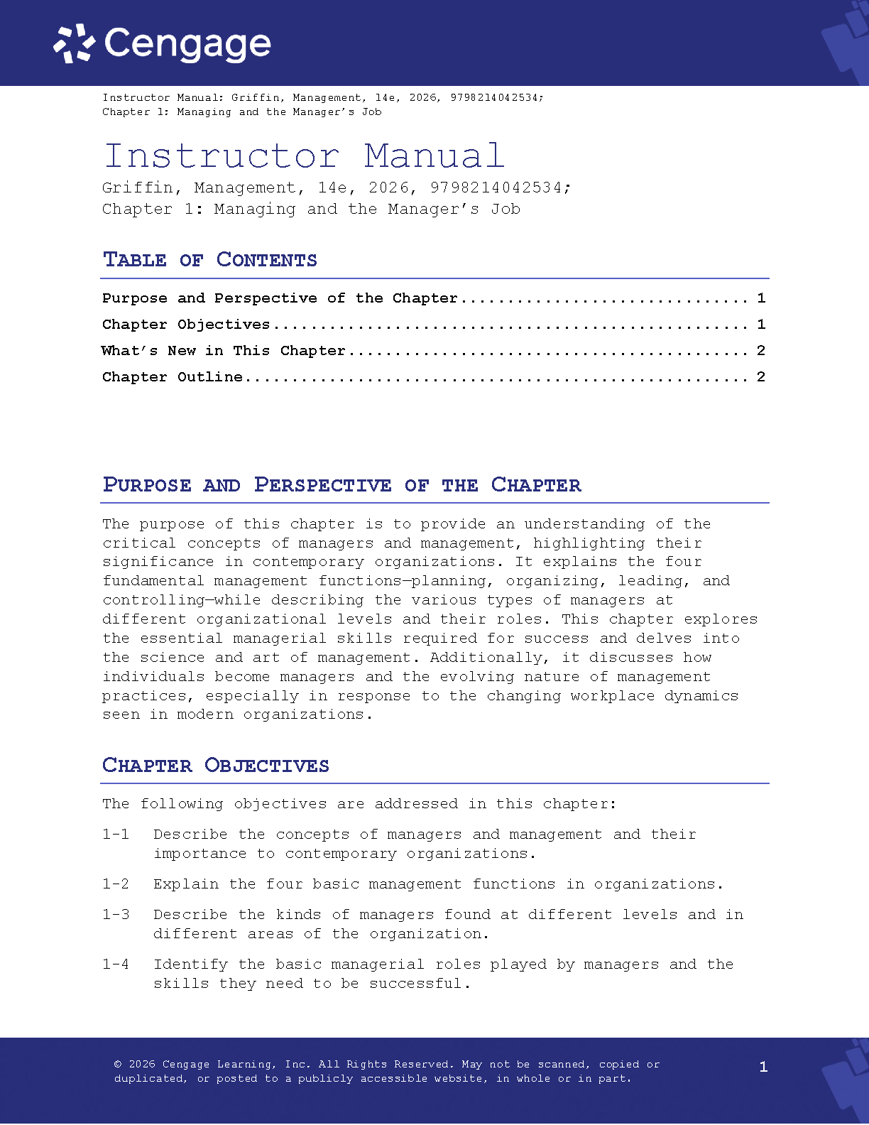 Instructor Manual for Griffin's Management, 14th Edition: A Guide to Mastering Management Concepts for Exam Success in 2024/2025