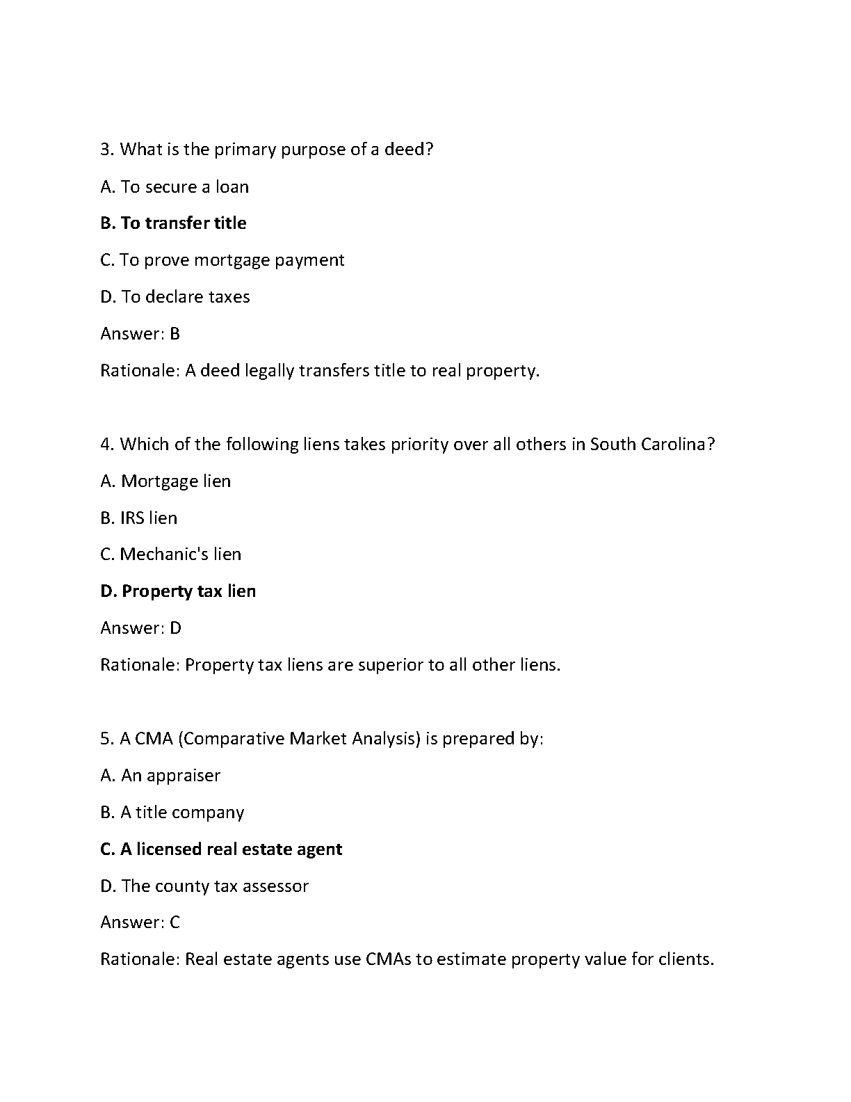 2025 SC Real Estate Practice Exam: 120 Questions and Answers for Exam Success