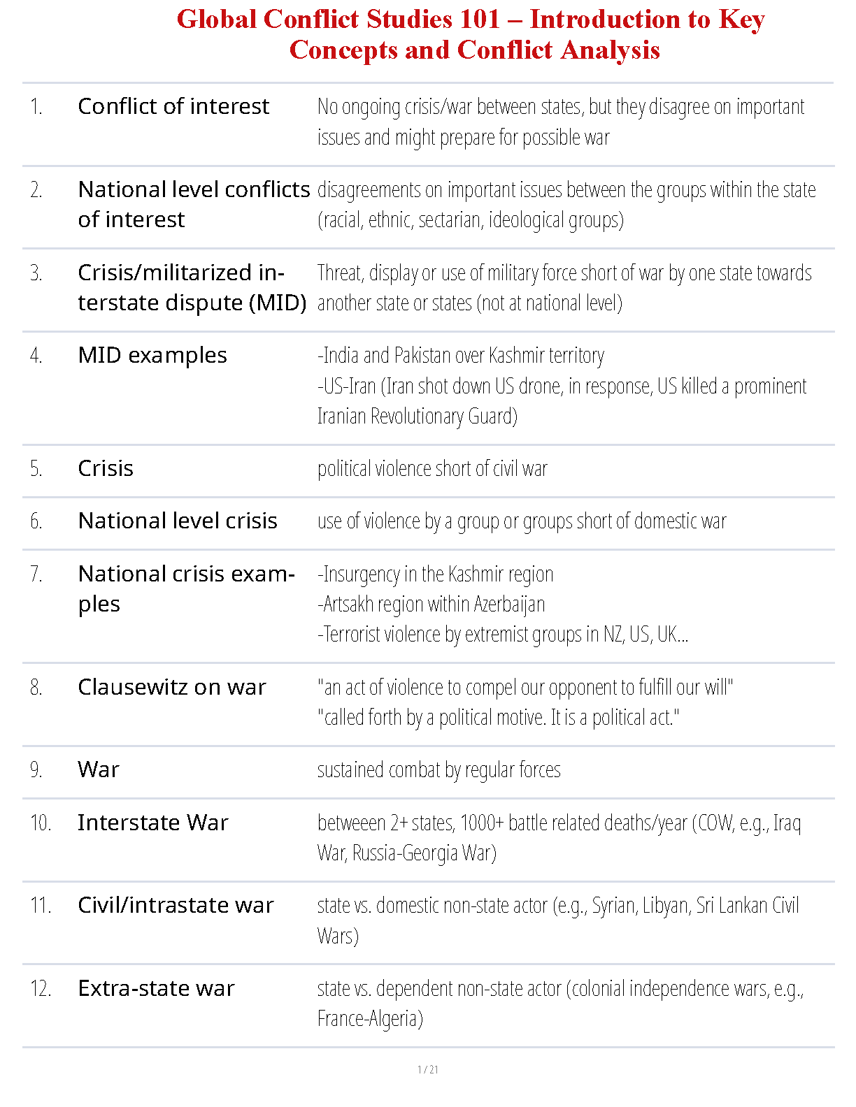 Global Conflict Studies 101: Introduction to Key Concepts and Conflict Analysis - 2024/2025 Edition