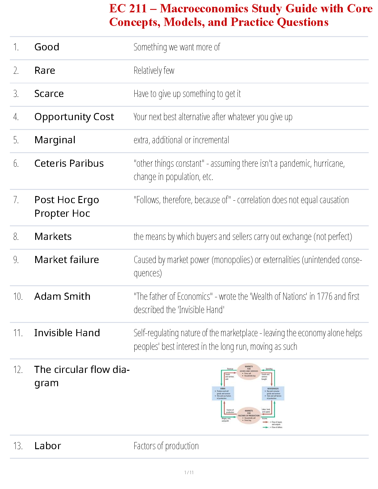 EC 211 Macroeconomics Study Guide with Core Concepts, Models, and Practice Questions