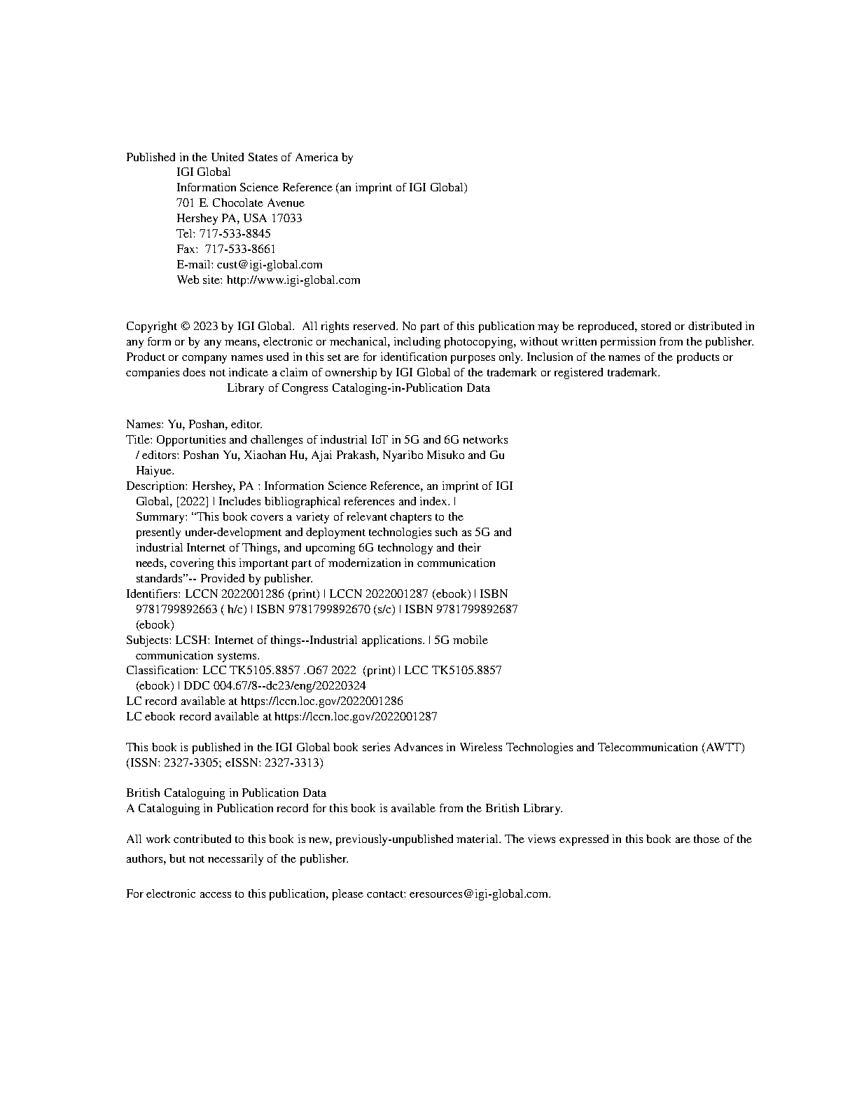Industrial Applications of the Internet of Things and 5G and 6G Networks by Poshan Yu, Xiaohan Hu, Ajai Prakash, Nyaribo Wycliffe Misuko, and Gu Haiyue