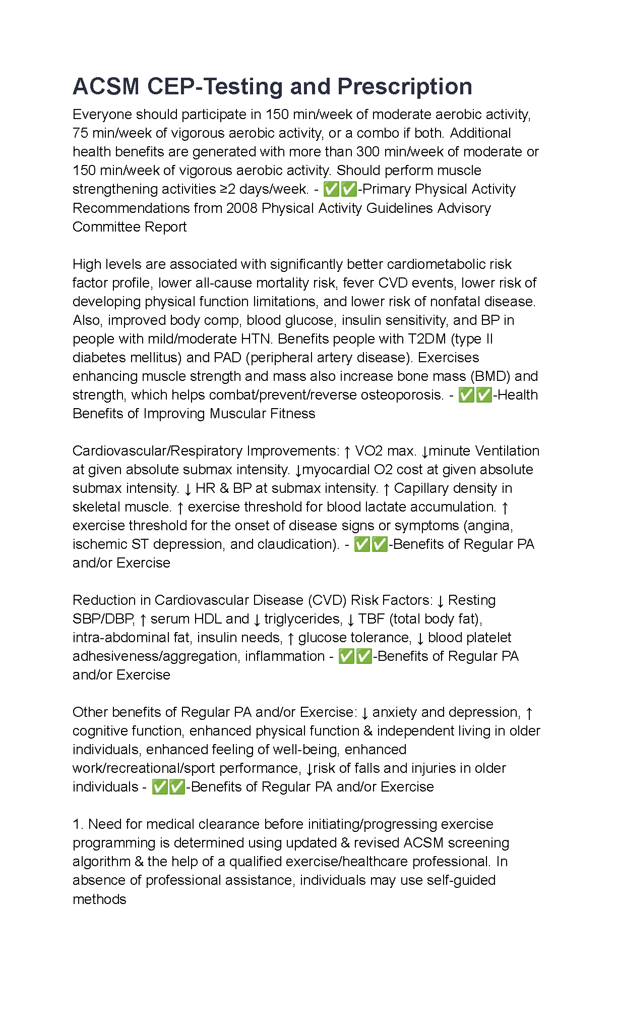 Master the ACSM CEP exam with this concise yet thorough guide, designed to help students ace their exams on the first attempt. Covering key concepts, this resource simplifies complex information, ensuring a smooth path to success and avoiding resits. Prepare effectively for the 2024-2025 academic year.