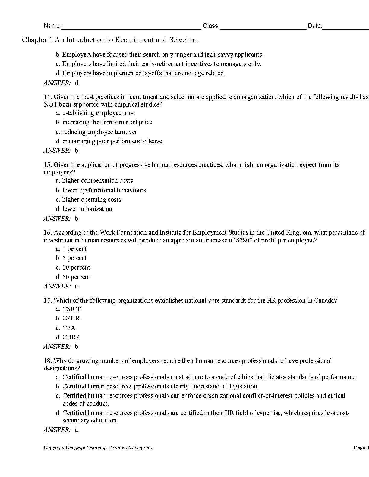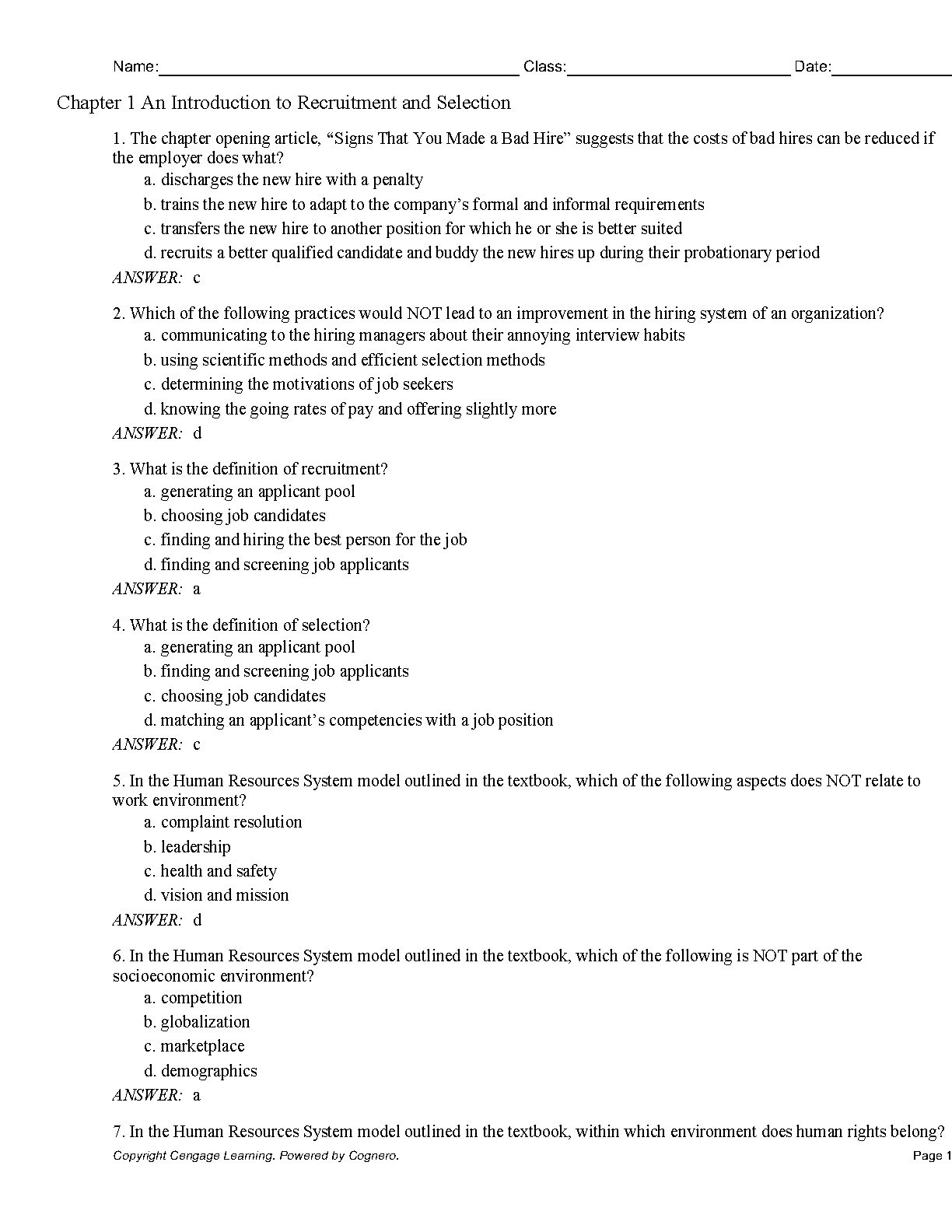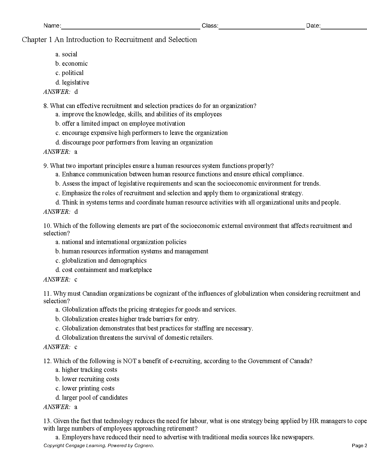 This comprehensive test bank provides a wide range of multiple-choice questions and answers related to recruitment and selection, ideal for students to prepare for exams and master the concepts. Improve your understanding of recruitment strategies, selection methods, and the human resources system. Ace your exams on the first try!