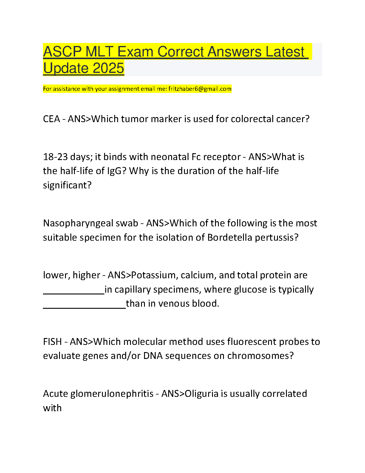 ASCP MLT Exam Correct Answers 2025 Update: Ace Your Exam with Latest Questions and Answers