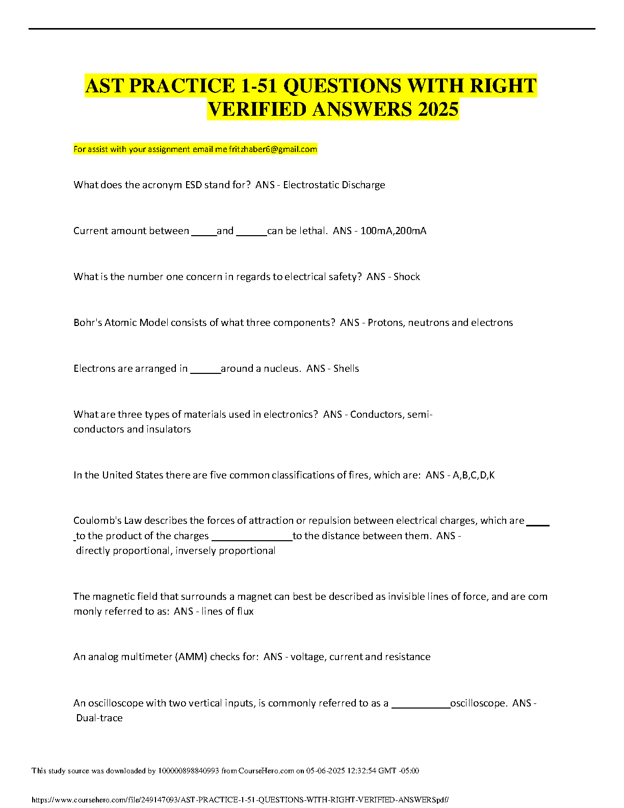 Prepare for your AST exam with confidence using this comprehensive practice resource. This 2025 edition includes 51 verified questions and answers, designed to help students pass on their first try and avoid resits. Boost your knowledge and exam readiness today!