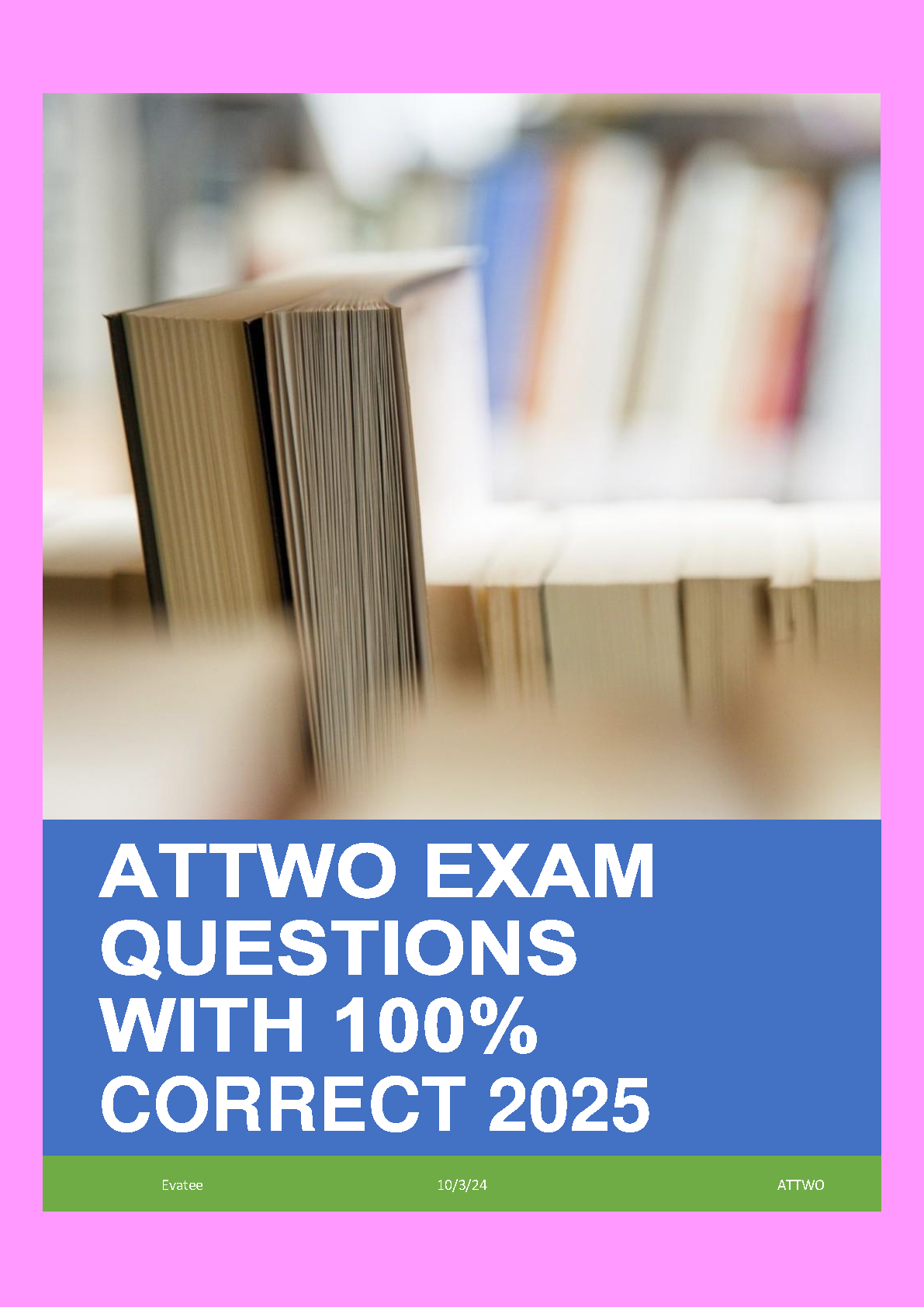Ace your ATTWO exam with this comprehensive resource containing 100% accurate answers for the 2025 academic year. Designed to help students achieve exam success on their first attempt, avoiding costly resits. Gain confidence and mastery over the material with this invaluable study tool.
