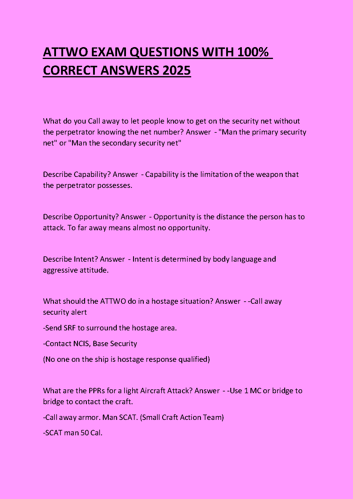 ATTWO Exam Questions with 100% Correct Answers 2025 Edition