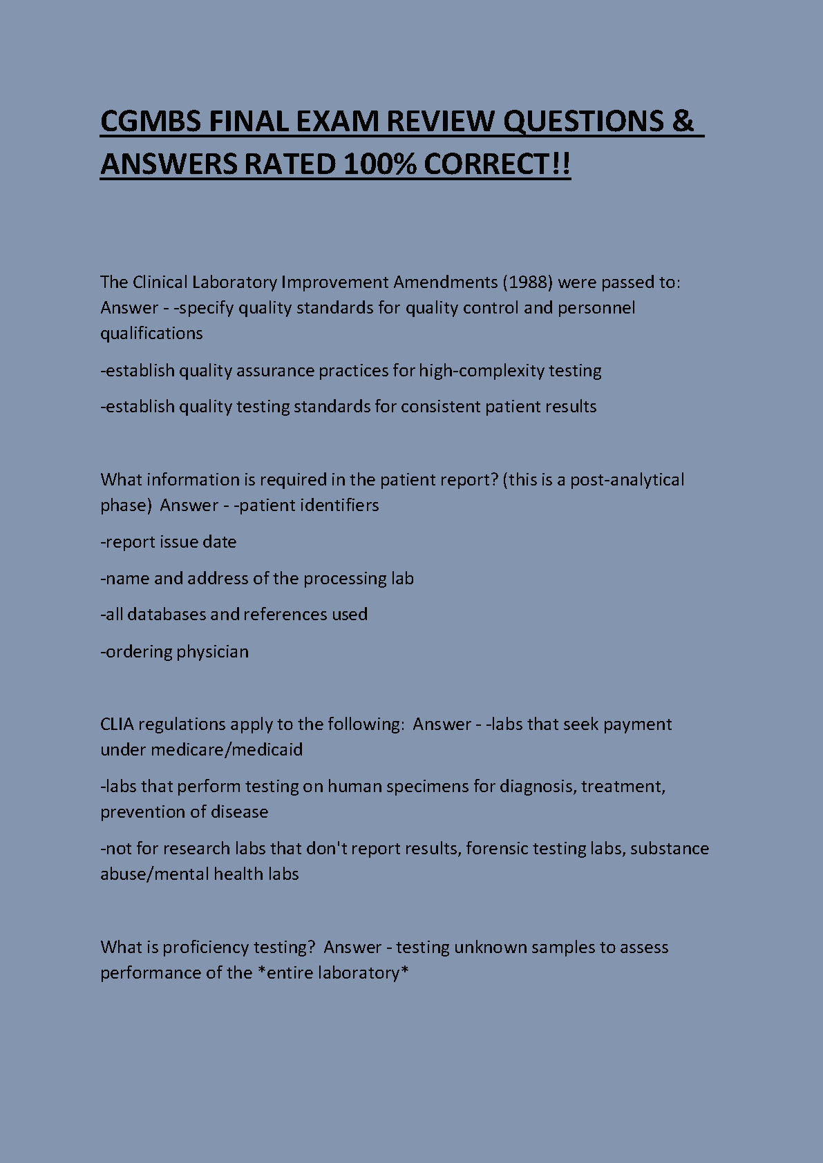 CGMBS Final Exam Review Questions & Answers: 100% Correct - 2024/2025 Edition